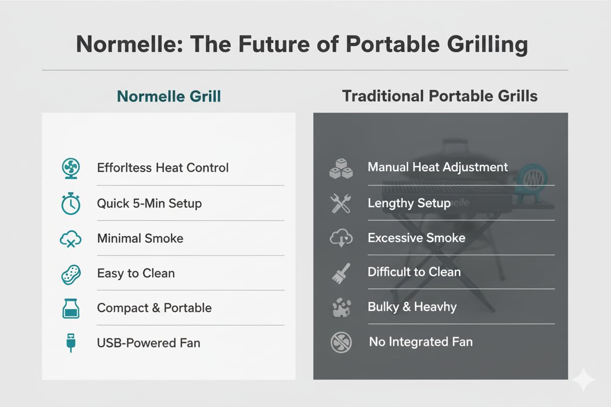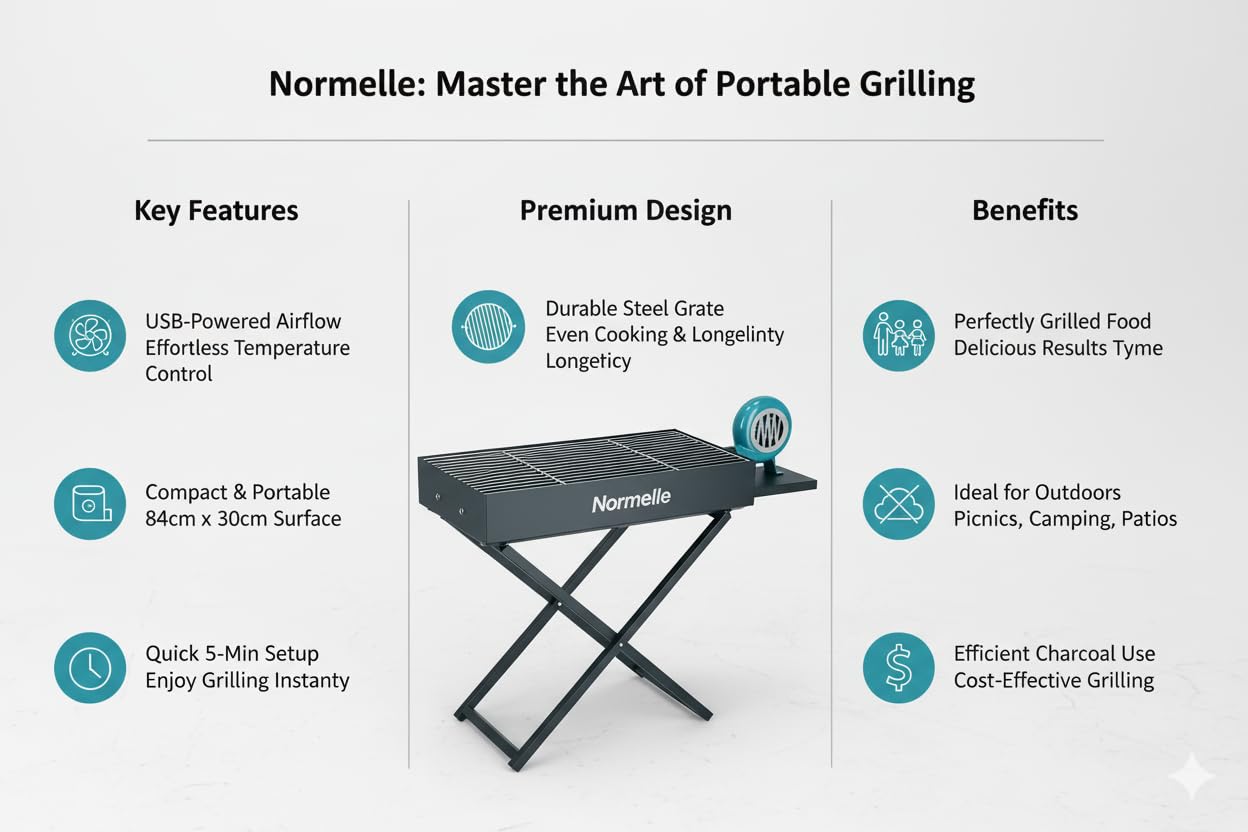 4. Easy to Assemble, Use & Clean – No tools are needed for setup—simply unfold, place the charcoal tray, and start grilling. The removable grill grid prevents sticking and makes cleaning quick and hassle-free, allowing more time to enjoy your meals.