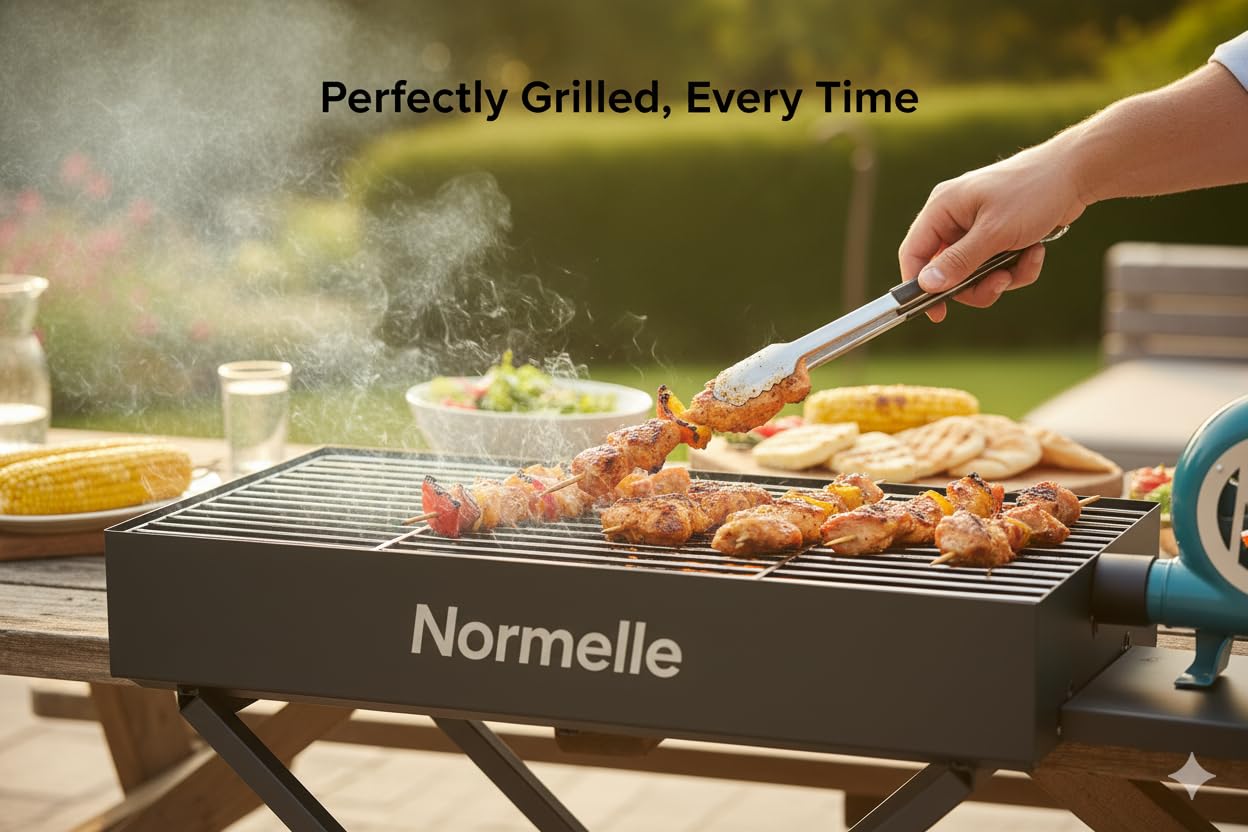1. Foldable & Portable Outdoor Grill – Designed with an X-shape foldable stand and adjustable height, this charcoal barbecue grill is easy to carry and store. Its lightweight yet sturdy frame makes it ideal for camping, picnics, garden gatherings, and road trips without taking up much space.