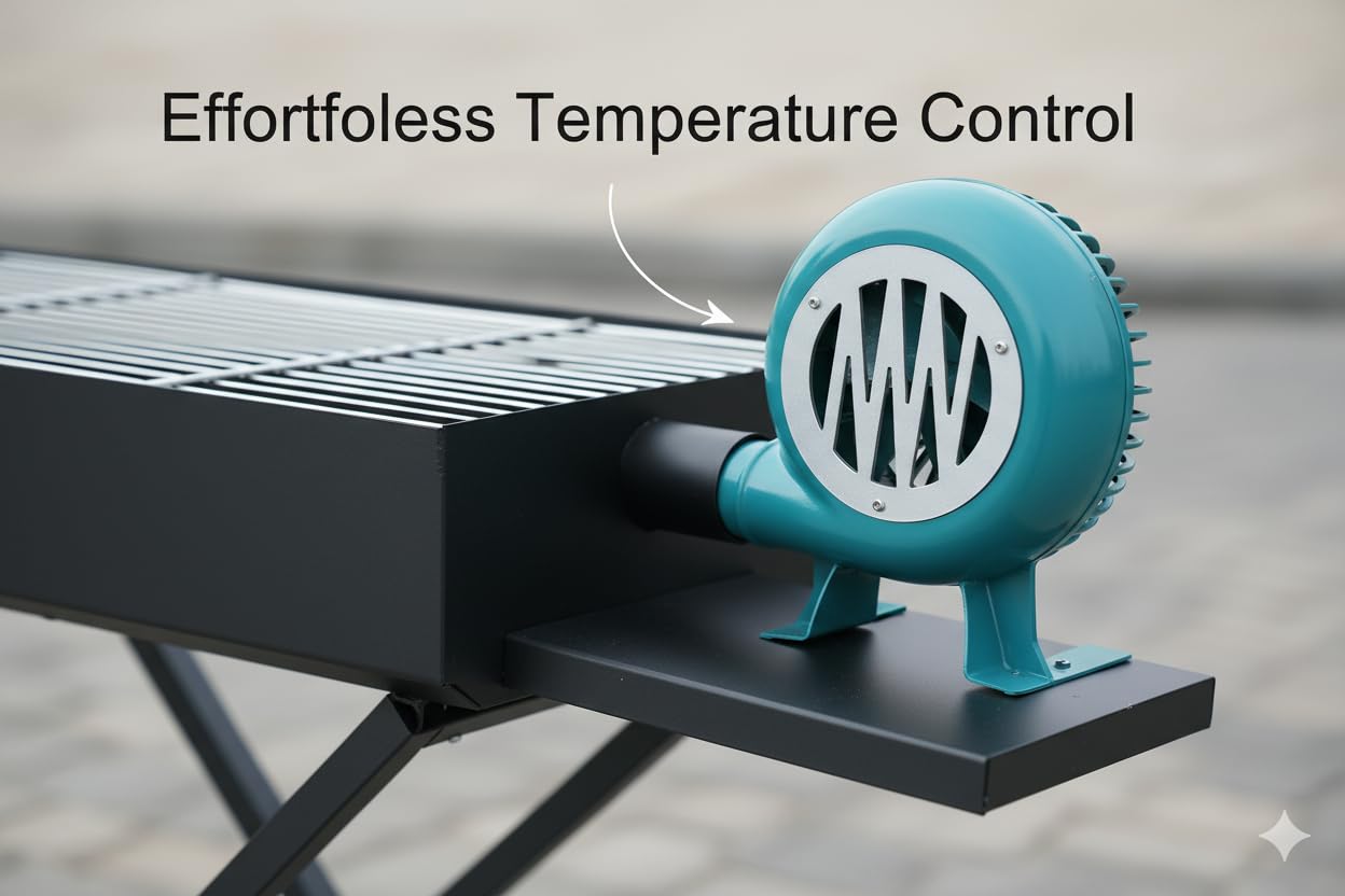 5. Included Hand Fan Blower for Quick Ignition – Comes with a manual blower fan to ignite charcoal faster while minimizing ash scatter. Perfect for quickly heating coals or wood, giving you more control over cooking temperature and reducing dust and sparks.