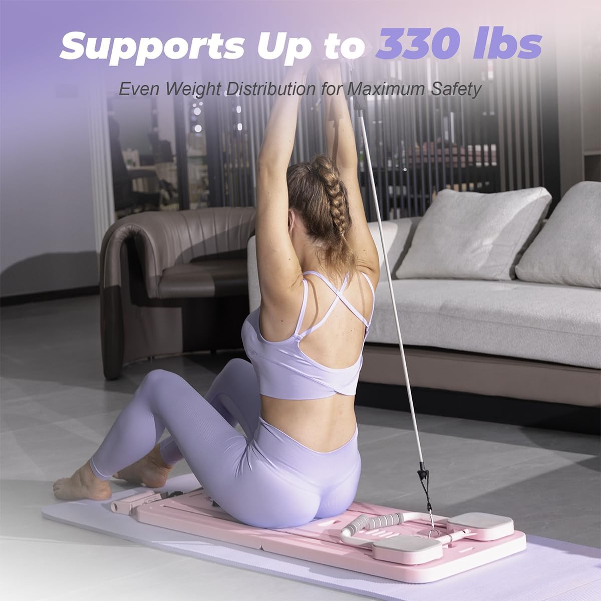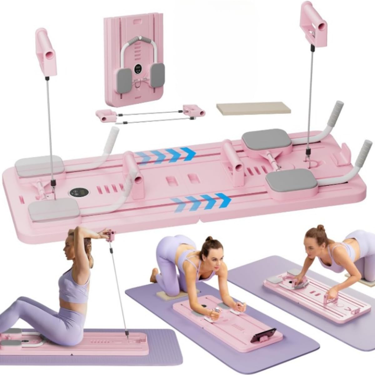 [FULL BODY WORKOUT] – Targets abs, arms, shoulders, glutes, and legs with multi-functional components including resistance bands and sliding tracks.