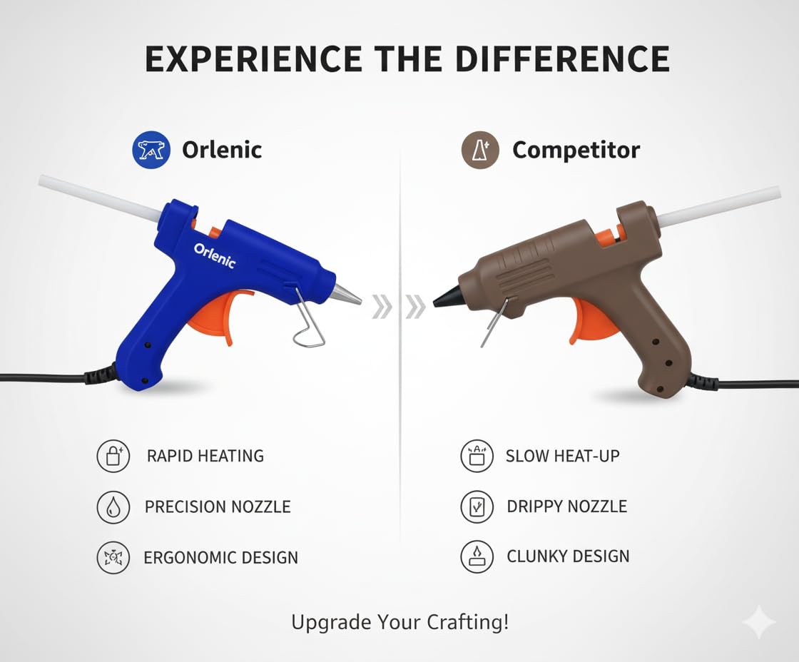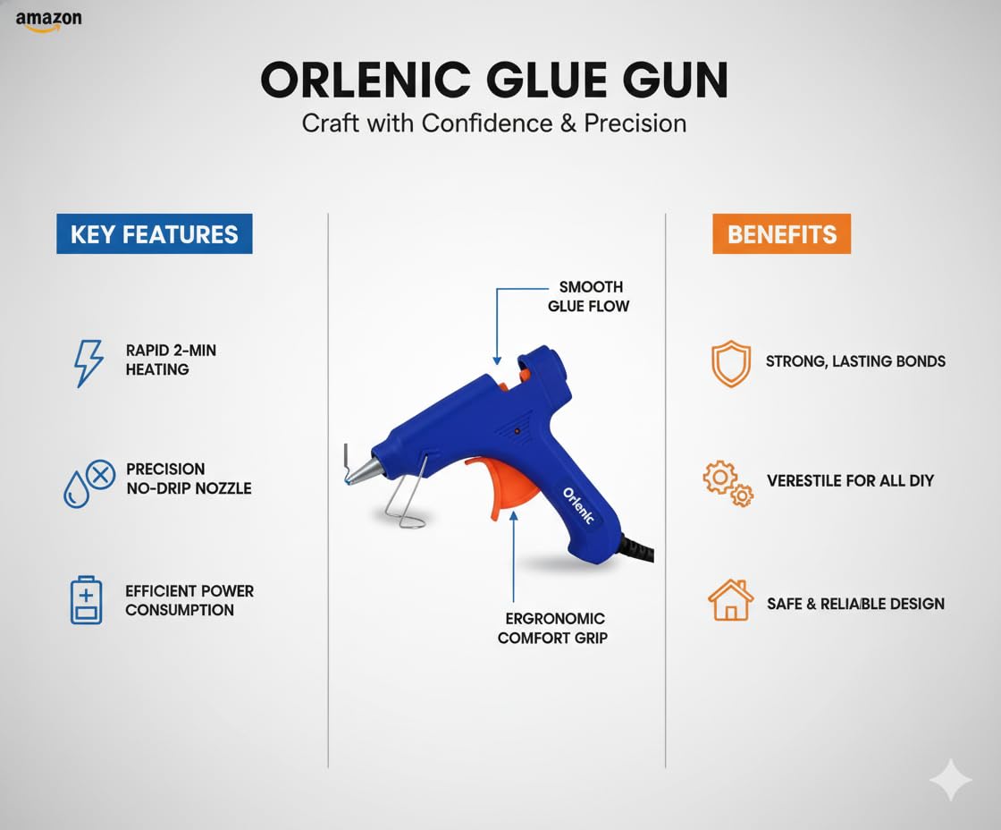 Delivers consistent heat for strong adhesion, ideal for quick repairs, crafts, and DIY projects with minimal waiting time.