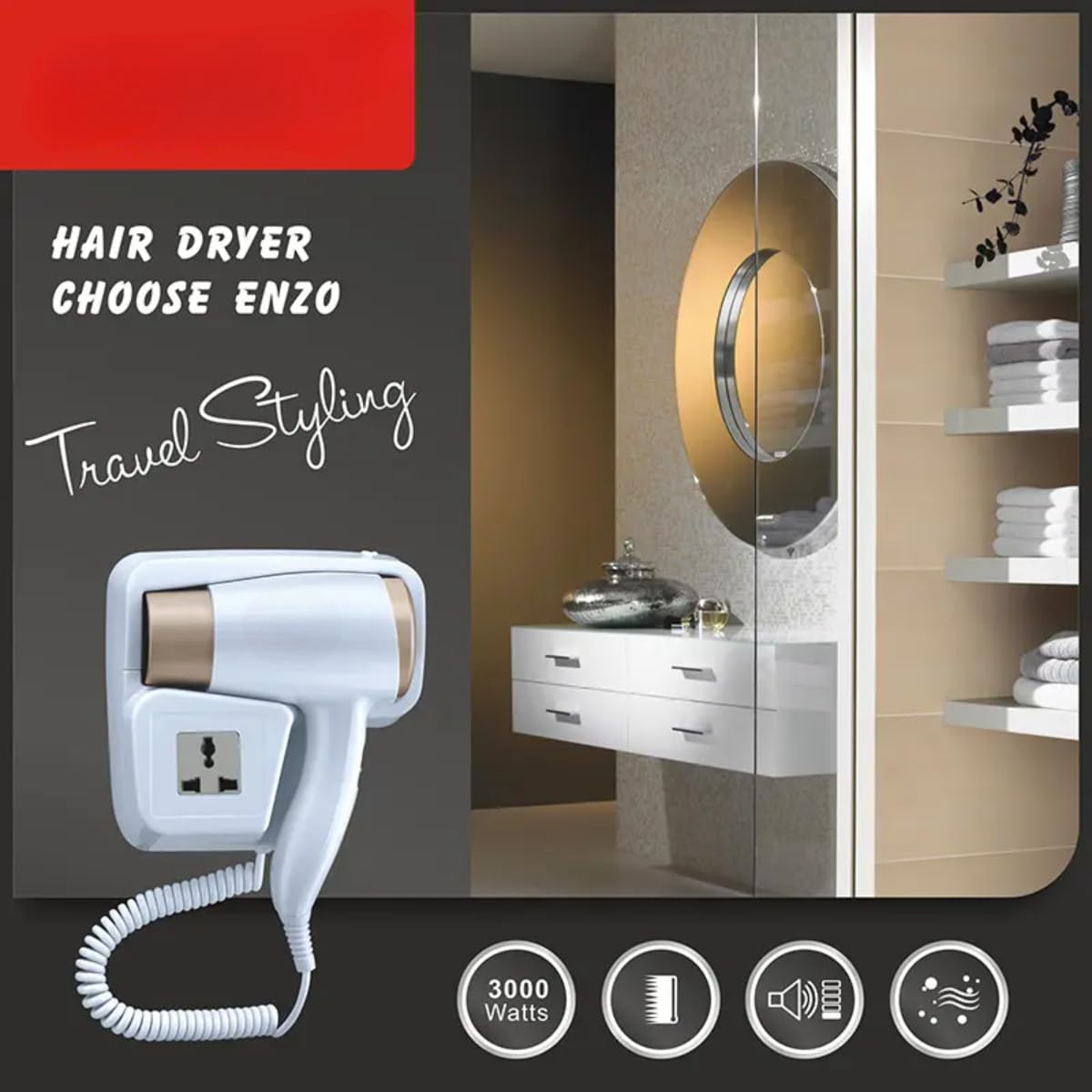 This mini travel hair dryer features a foldable design, making it hairdryer compact and easy to carry. Ideal for travel, it includes a storage bag for convenience, offering professional styling anywhere.