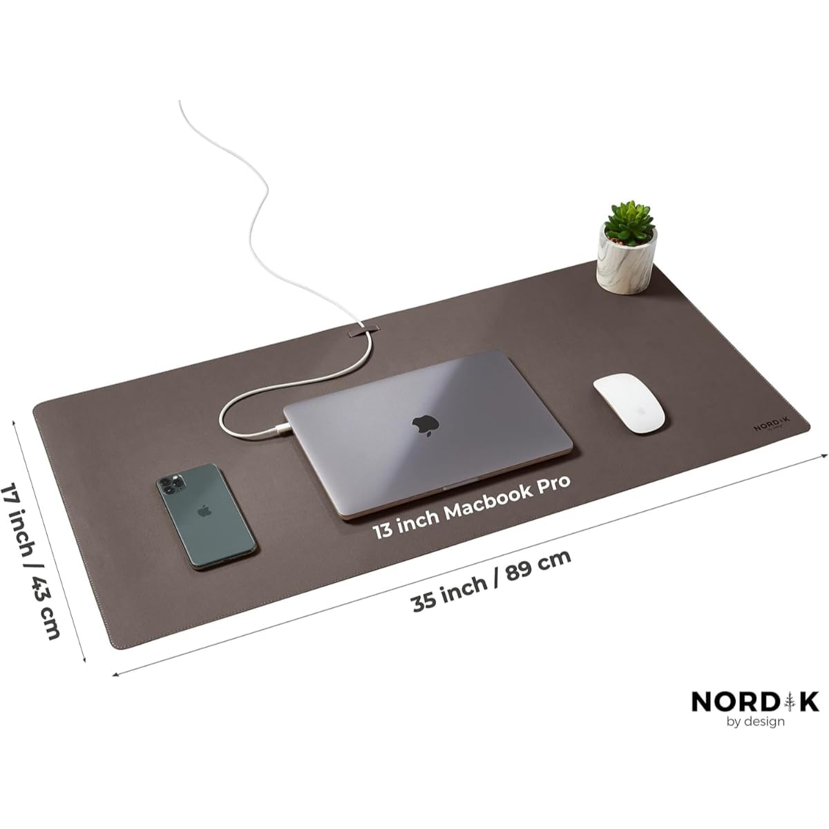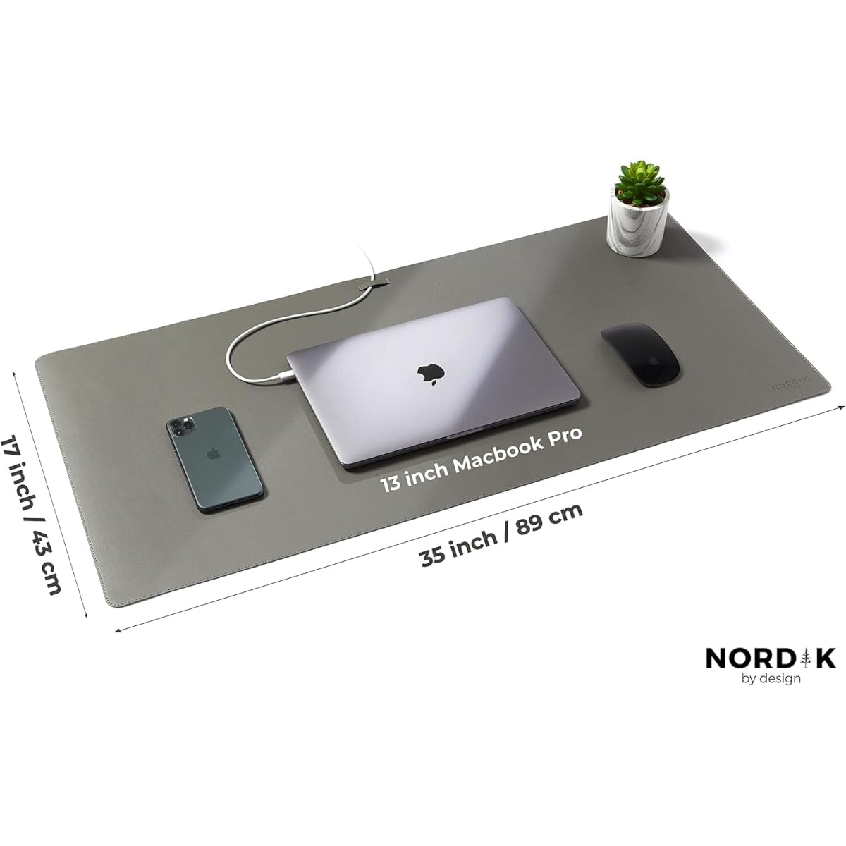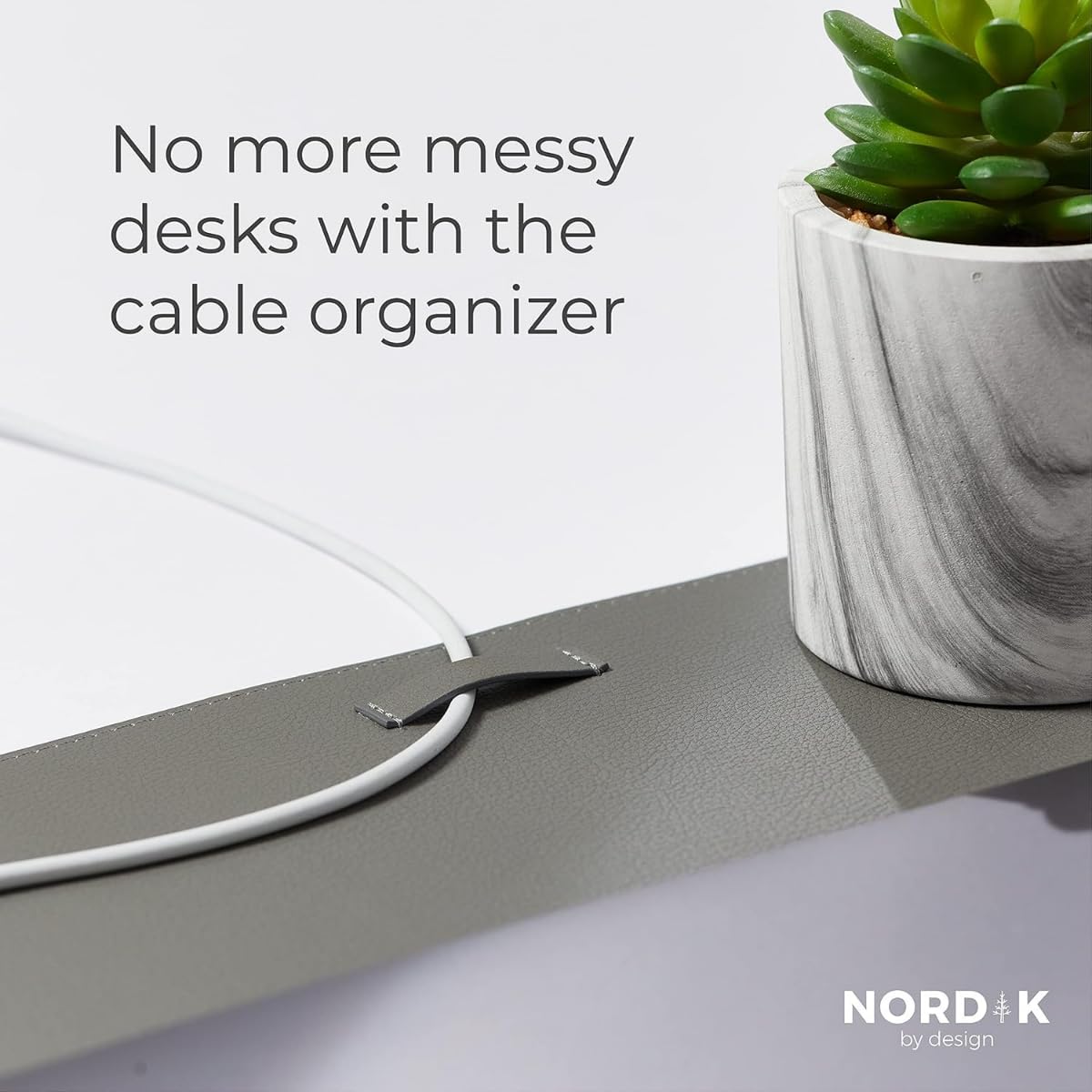 Leather Desk Mat Cable Organizer (Alaskan Gray, 35 x 17 inch) – Premium Extended Mouse Mat for Home Office, Non-Slip Vegan Leather Desk Pad Protector & Blotter