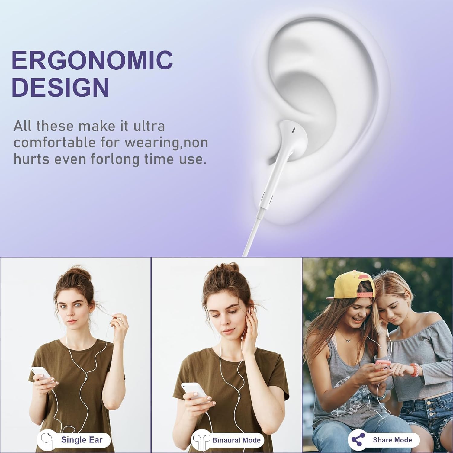 Ergonomic shape ensures stable, fatigue-free wear during long listening sessions.