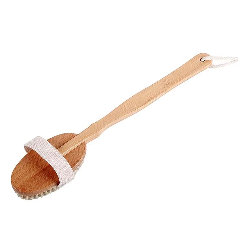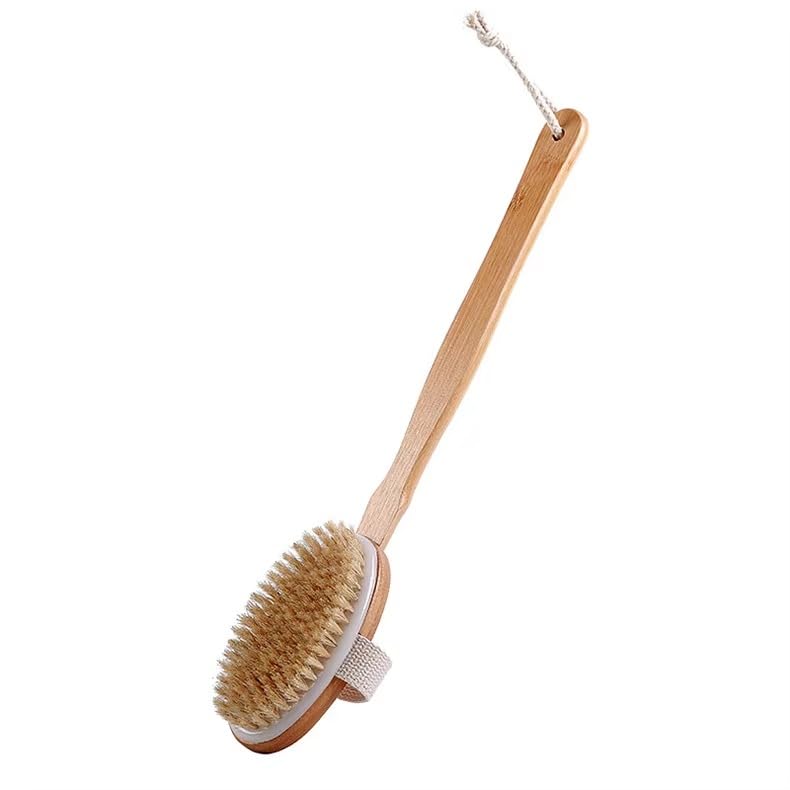 Long Handle Detachable Bamboo Shower Back Scrub Brush – Natural Boar Bristle Bath Brush for Women, Exfoliating Body Scrubber for Smoother Skin, Cellulite Massage & Dry Brushing