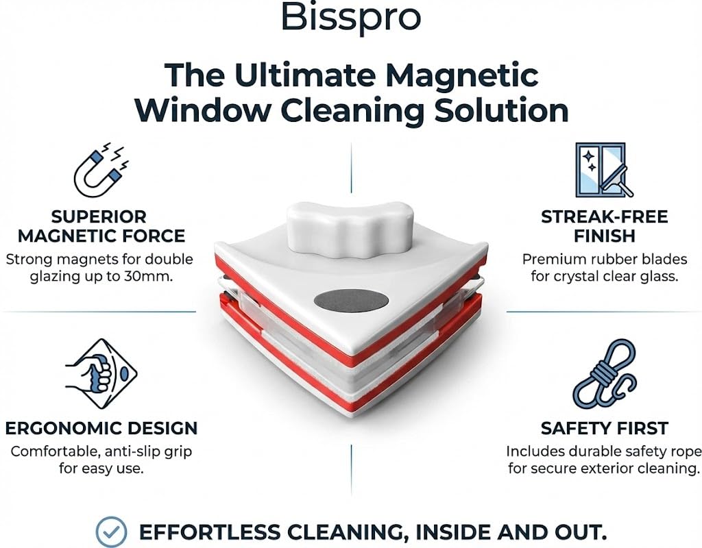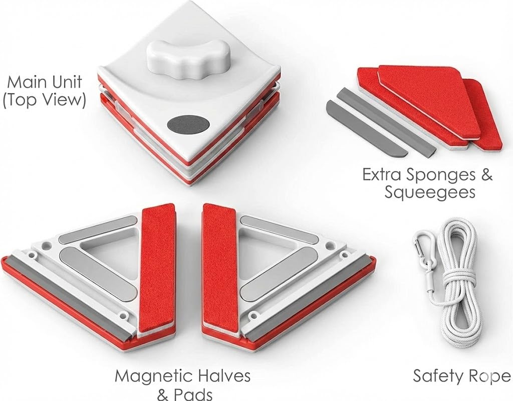SAFE & EFFICIENT FOR HIGH-RISE WINDOWS – Designed specifically as a magnetic window cleaner for high-rise buildings, this innovative glass cleaning tool eliminates dangerous leaning out of windows, equipped with a safety rope attachment that prevents accidental falls, making window washing safer for homeowners, office managers, and professional cleaners tackling exterior glass surfaces.