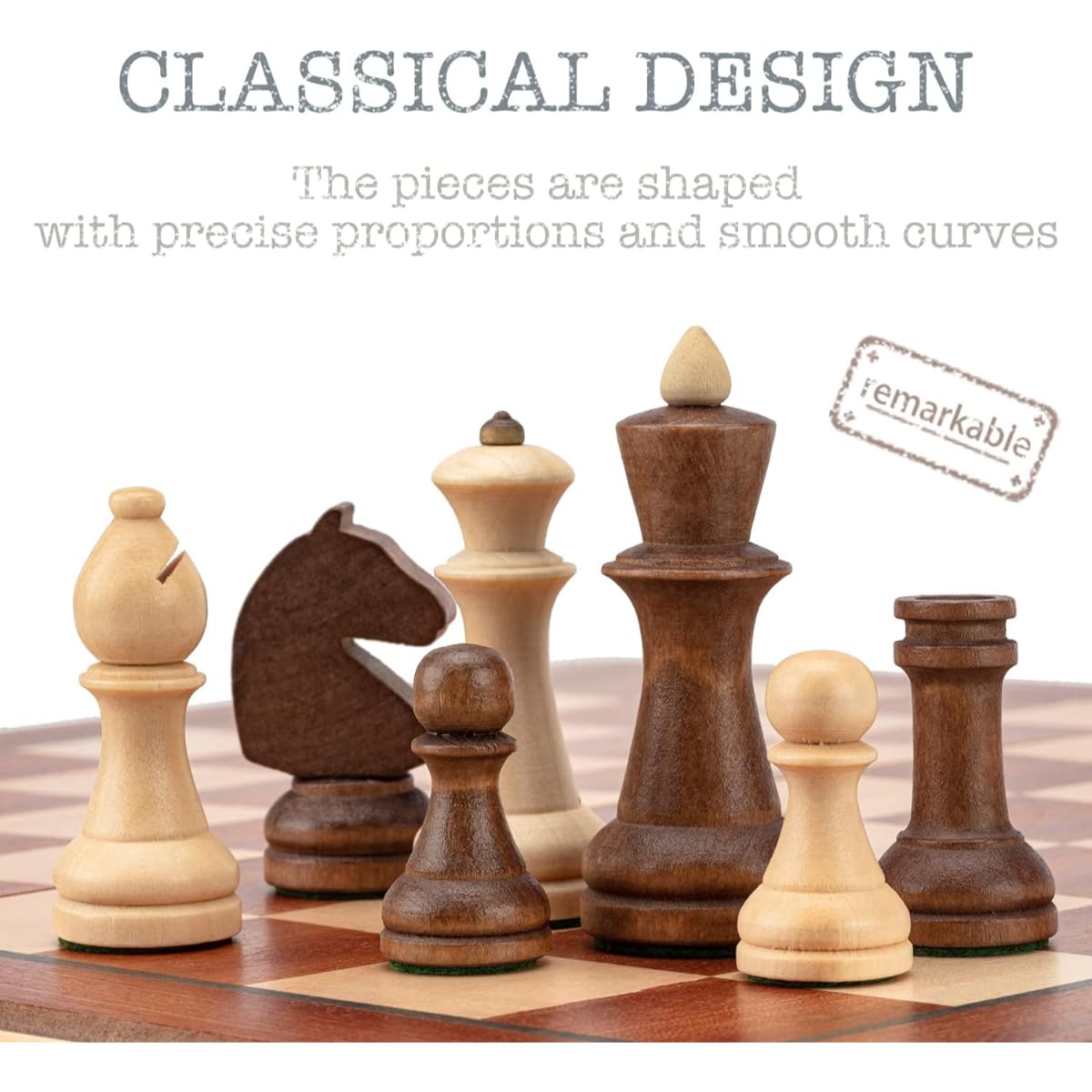 Distinctive Design: Explore the Unique Shape & Curve of Each Chess Piece – Thoughtfully Crafted with Superior Quality & Environmental-Friendly Wood!