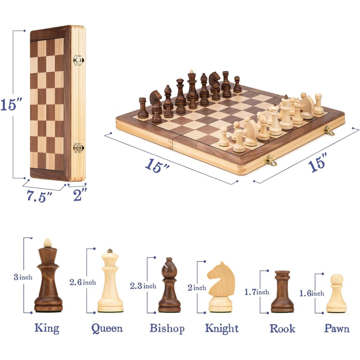 Practical Chess Mastery: King height 3 inches, Base diameter 1.2 inches – Conforming to USCF & FIDE Standards – Perfect Balance of Comfort and Practicality!