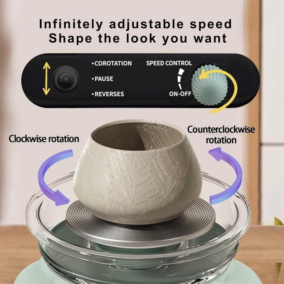 [EASY FOOT PEDAL CONTROL] – Control speed effortlessly with the included foot pedal, giving you precision and convenience while shaping your clay creations.