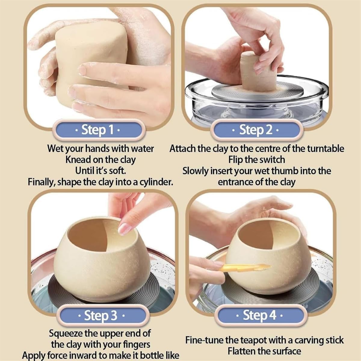 [POWERFUL MINI POTTERY WHEEL] – Compact yet efficient, this electric pottery wheel features a 4.7″ turntable and a durable motor, perfect for tabletop ceramic projects.