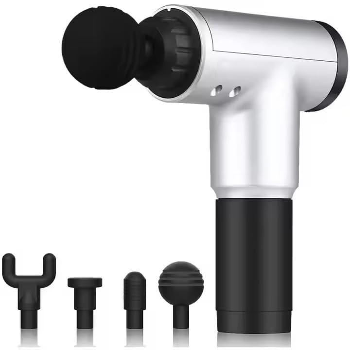 Mini Massage Gun for Deep Tissue – Handheld Muscle Massager with 4 Heads & Adjustable Speeds, Quiet Percussion Therapy for Neck, Back, Legs, Pain Relief & Workout Recovery – Compact & Portable