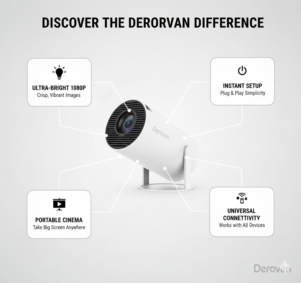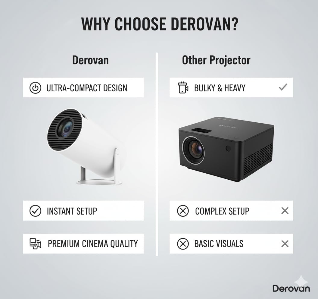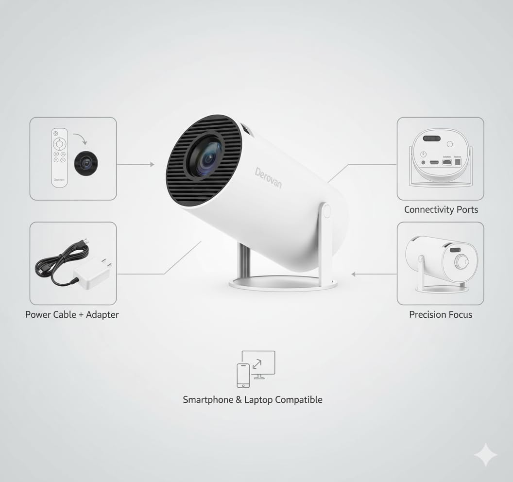 180° Rotatable Design – flexible placement projecting on walls, ceilings, or floors for immersive viewing.