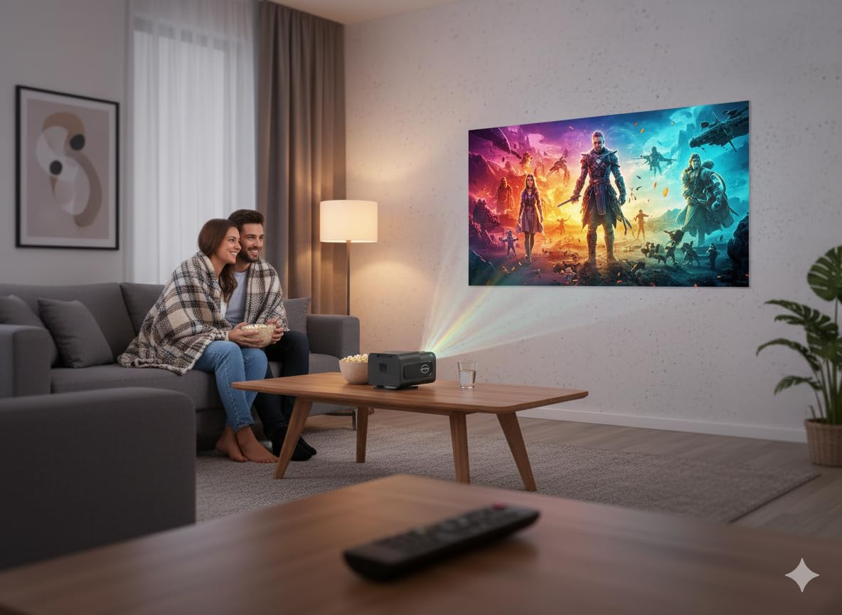 Transform your home into a cinema with this compact projector that rotates 180°. Project content on the ceiling, wall, or any surface—perfect for movie nights, gaming marathons, or relaxed weekend streaming from the couch or bed.