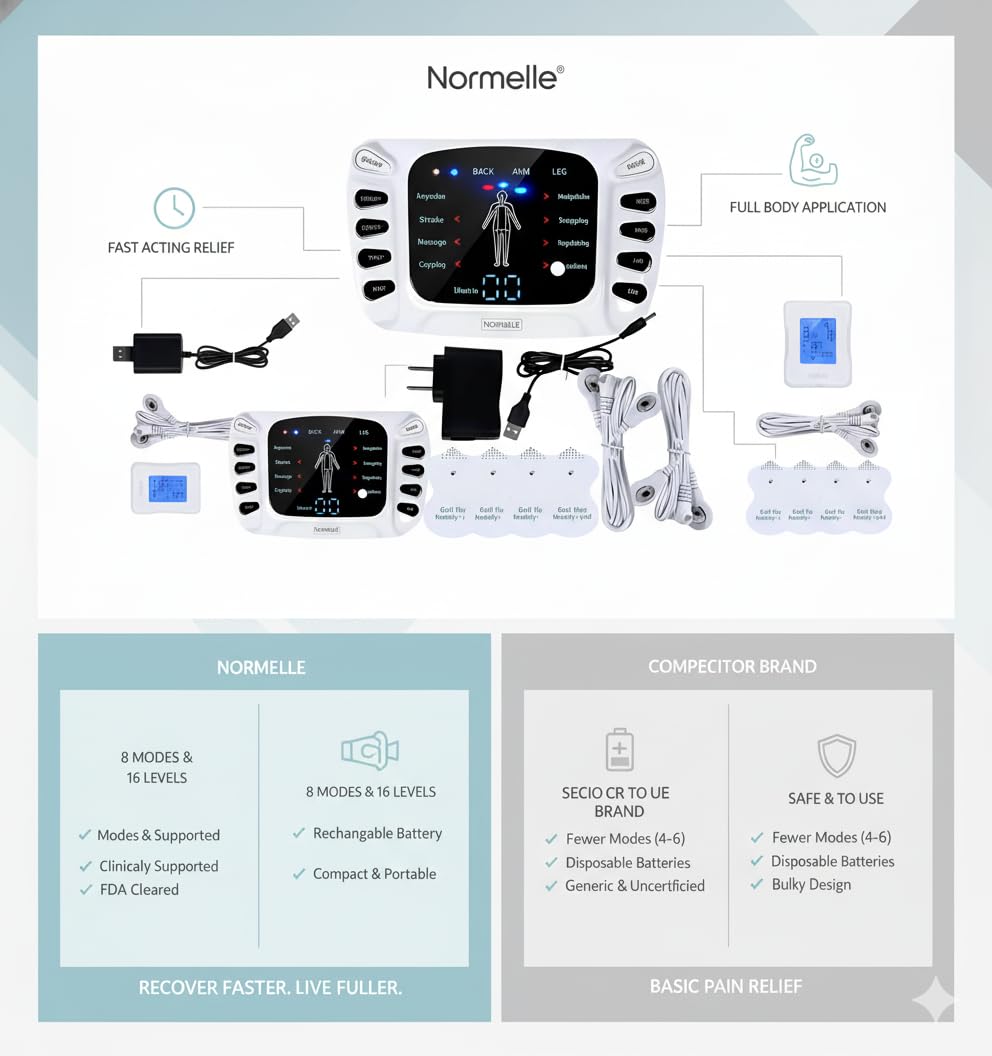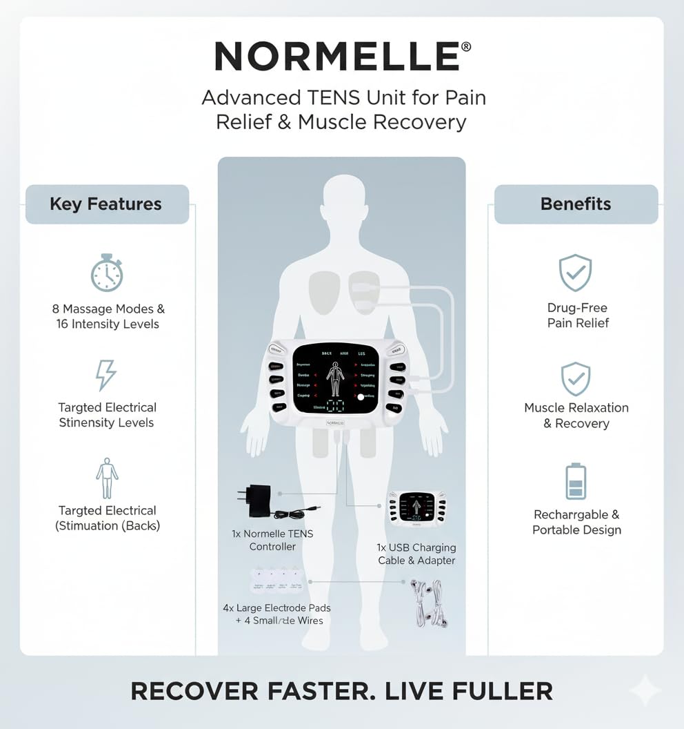 2. Multi-Area Application for Pain Management Designed for use on shoulders, back, waist, knees, arms, legs, feet, and more—perfect for relieving discomfort in multiple body areas through targeted electrical stimulation.