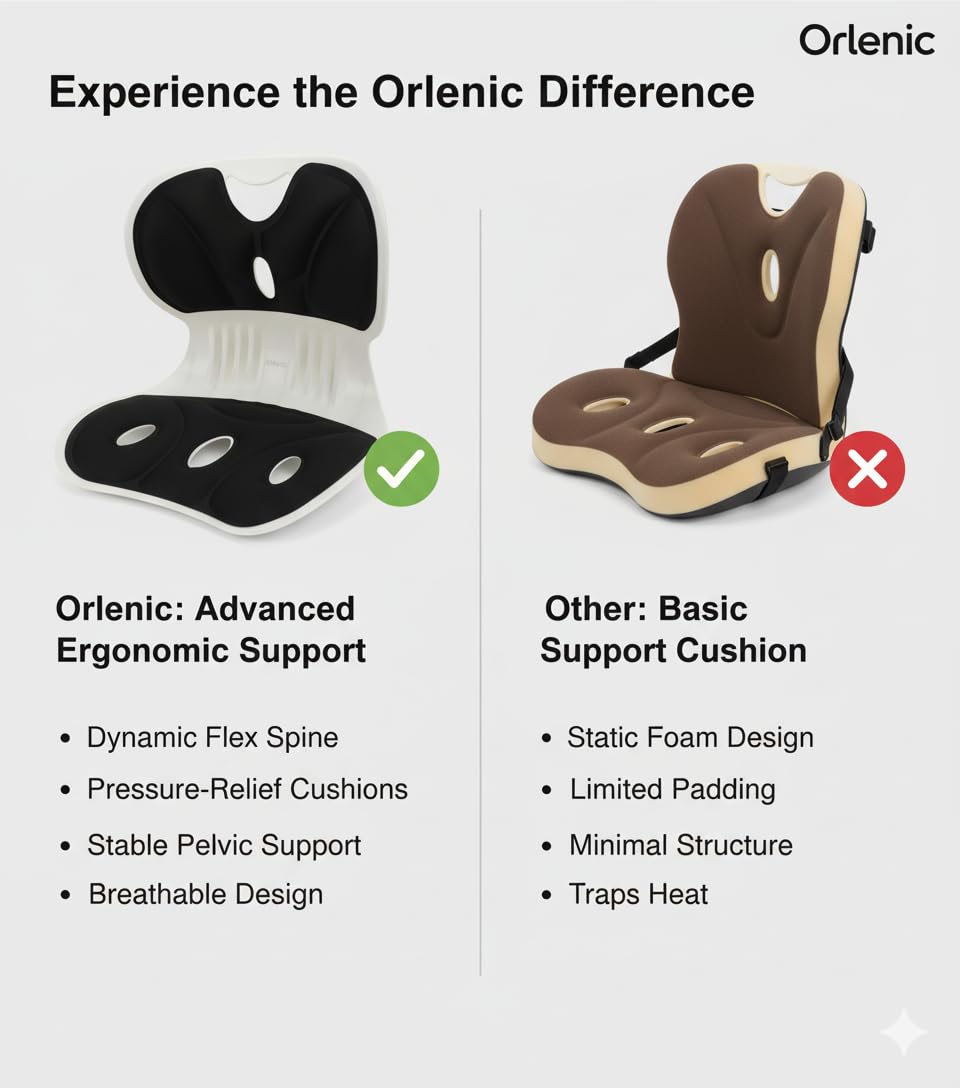 Ergonomic Contoured Design: Contoured edges fit natural body curves, providing optimal lumbar support and reducing back fatigue, hip discomfort, and pressure points for enhanced comfort during prolonged sitting sessions.