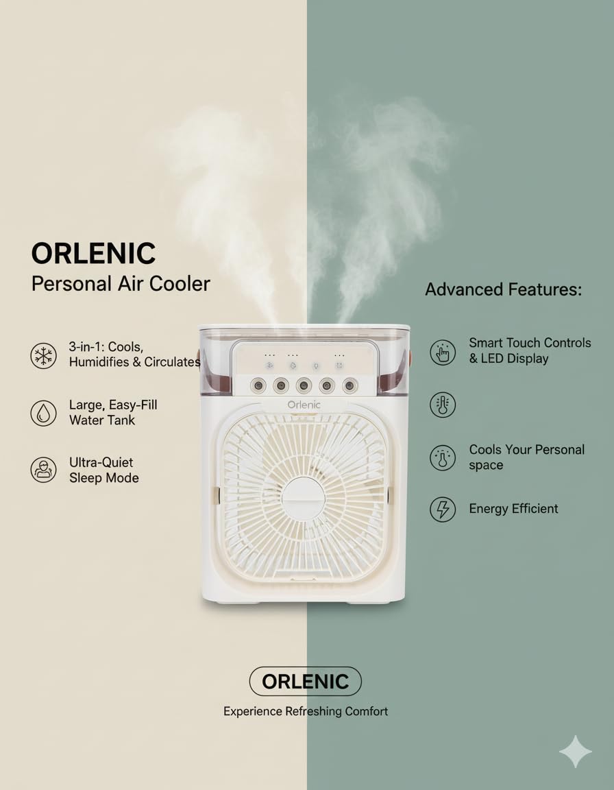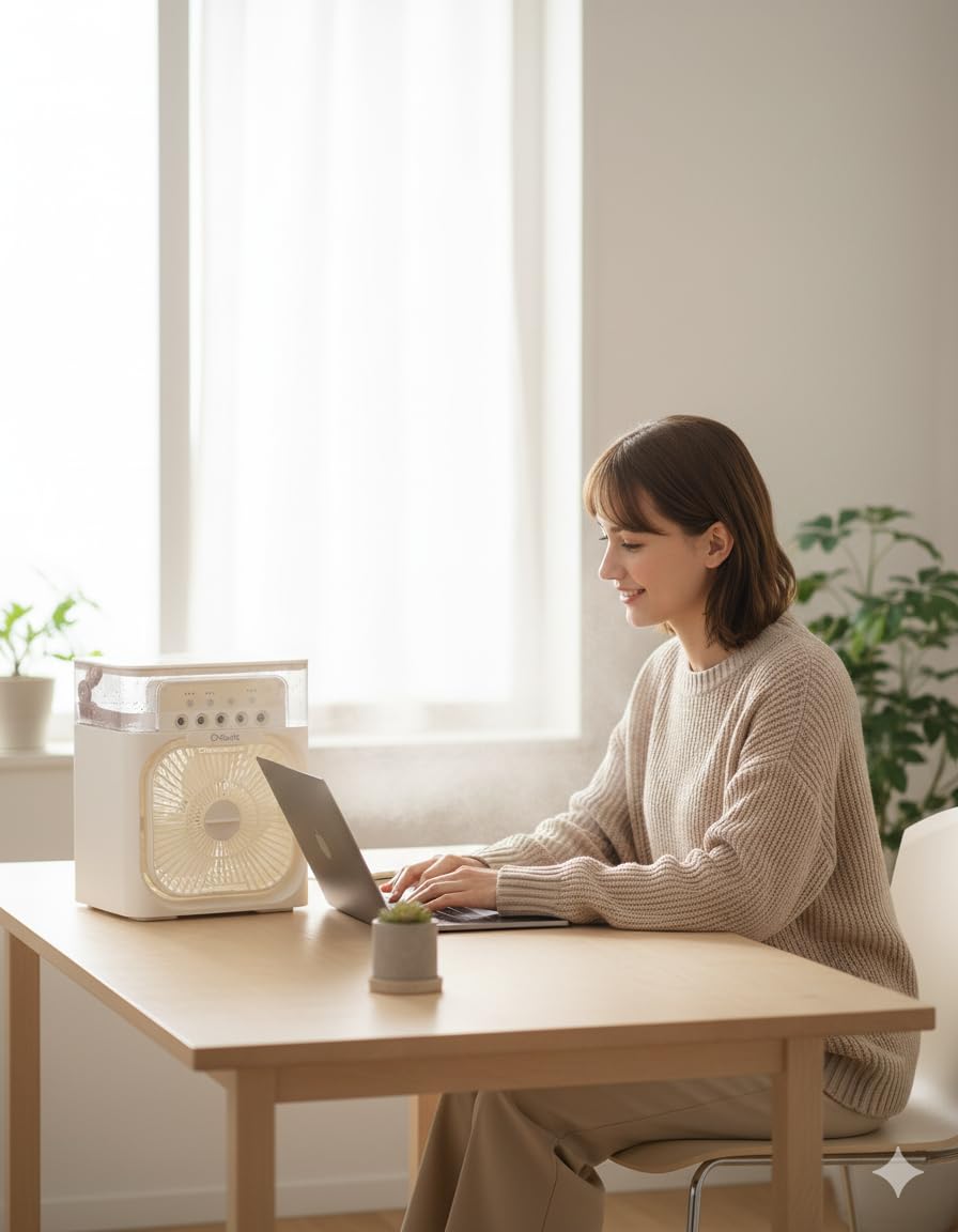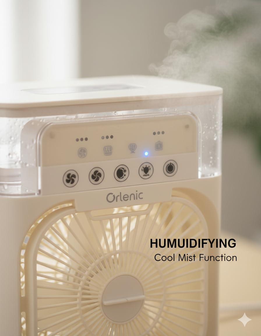 2. Multi-Purpose Design for Daily Use – Functions as a portable desk fan, personal humidifier, or mini air cooler. Perfect for use in bedrooms, offices, dorm rooms, kitchens, or while traveling. Creates a cool breeze and maintains a comfortable environment during work, study, or sleep.#