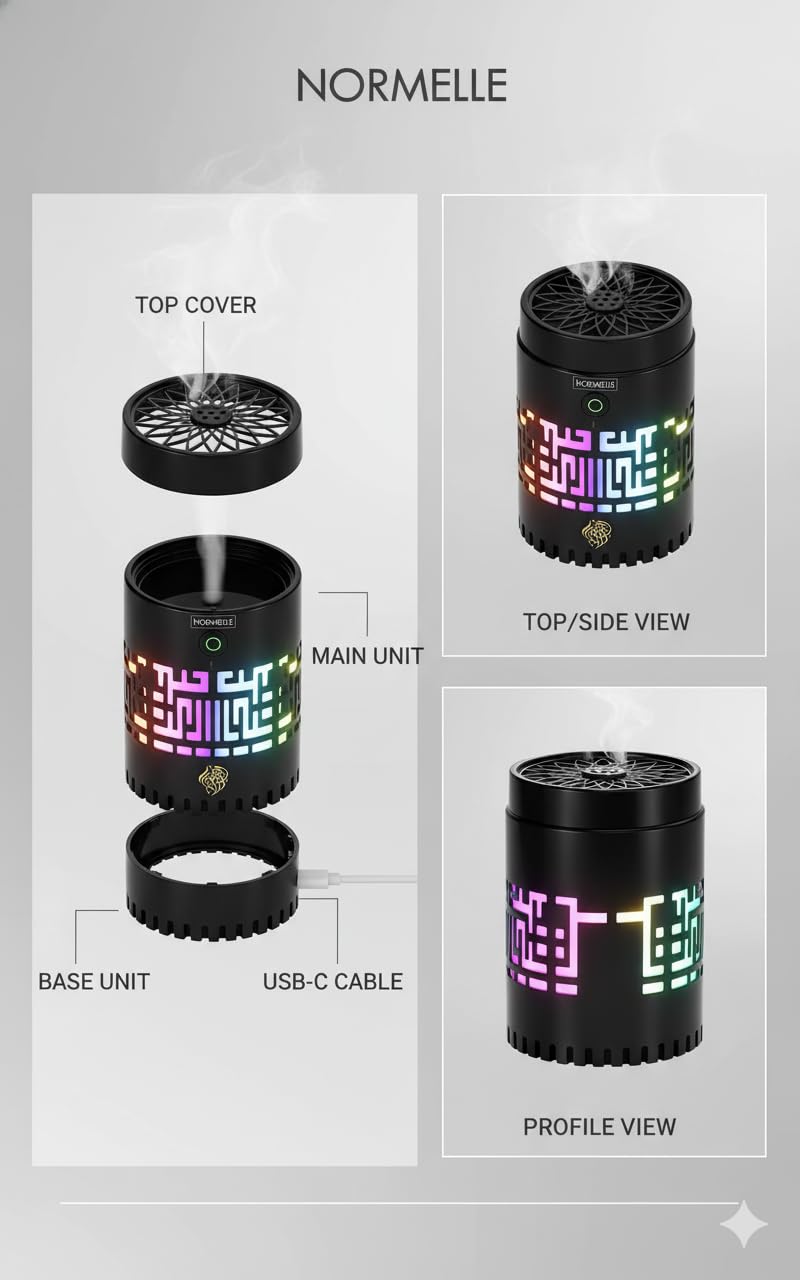 Crafted from full-metal materials with an electroplated finish, this diffuser is both stylish and long-lasting. Features intuitive touch buttons for quick control of light, incense burning, and Quran playback.