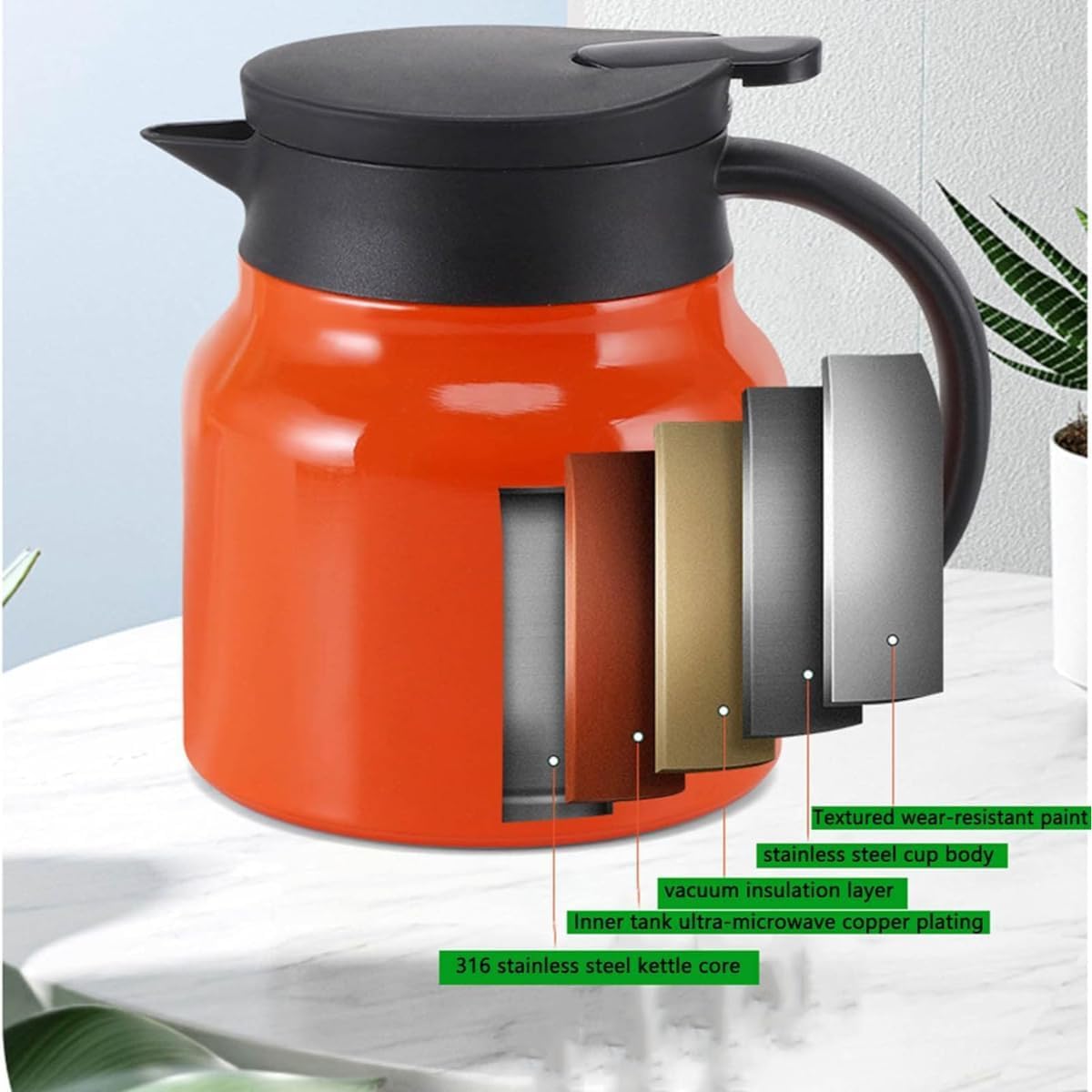 Durable Construction: Built with a double-layered structure, including an inner stainless steel layer, this kettle ensures durability and efficient heat retention. The high-quality materials not only prolong its lifespan but also maintain the water’s temperature for longer periods.