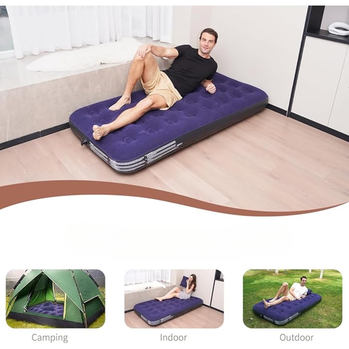 Easy Setup Inflatable Airbed – Quickly inflates and deflates for convenient use anywhere; this blow-up mattress provides a comfortable sleep solution for camping, hiking, or extra guest bedding at home.