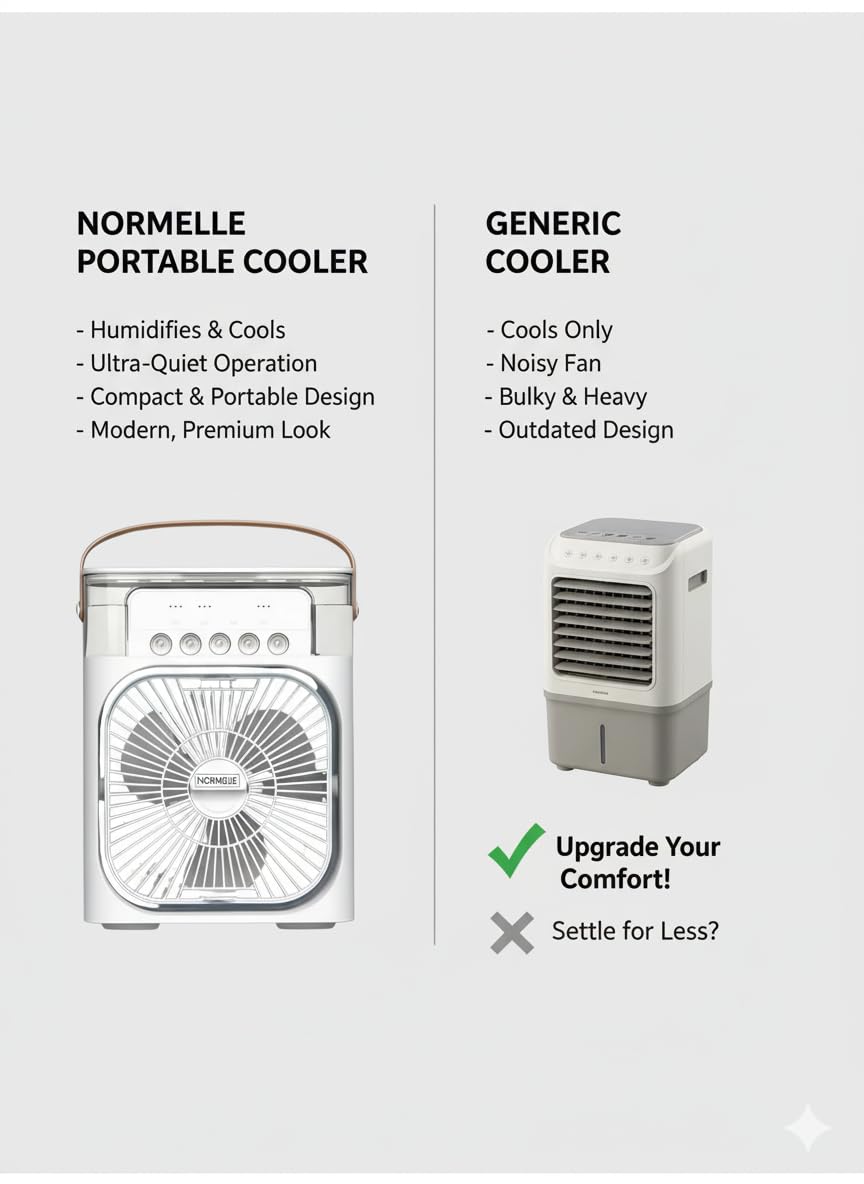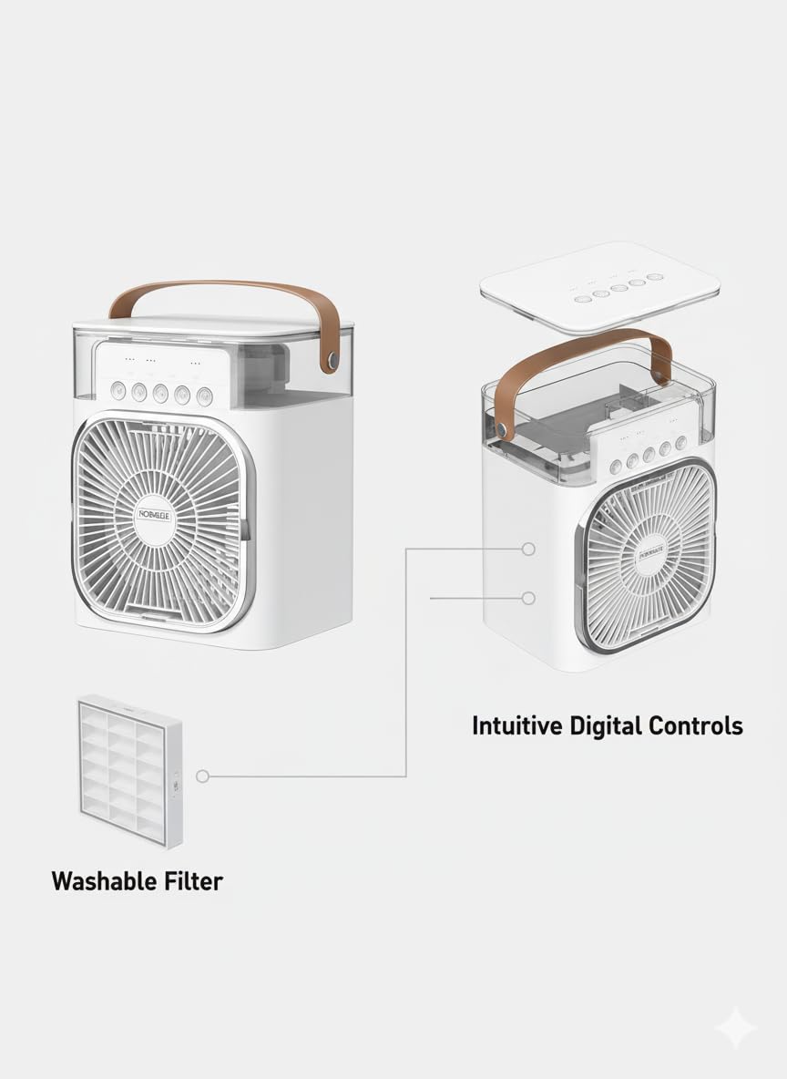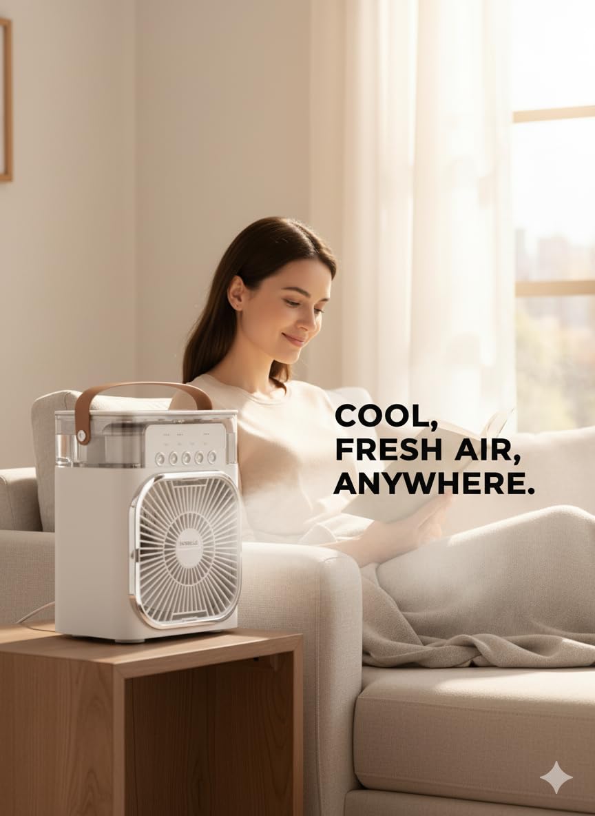 • Dual Cooling & Humidifying Function for All-Season Comfort – This multifunctional mini fan works as both an evaporative cooler and humidifier, helping you stay refreshed in summer and maintain moisture levels during dry seasons.