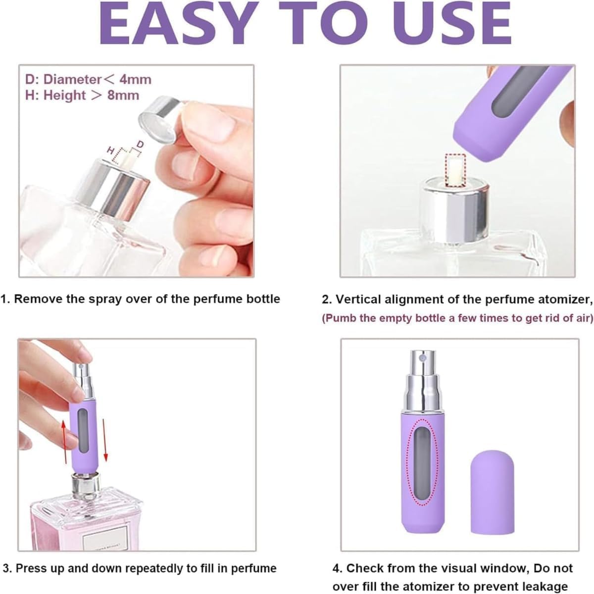 Versatile and Portable Design: Compact and lightweight, these atomizers fit seamlessly into your purse or pocket. Ideal for frequent travelers or night outs, they offer convenience and ease of use wherever you go, spray bottle ensuring your favorite scent is always at hand.