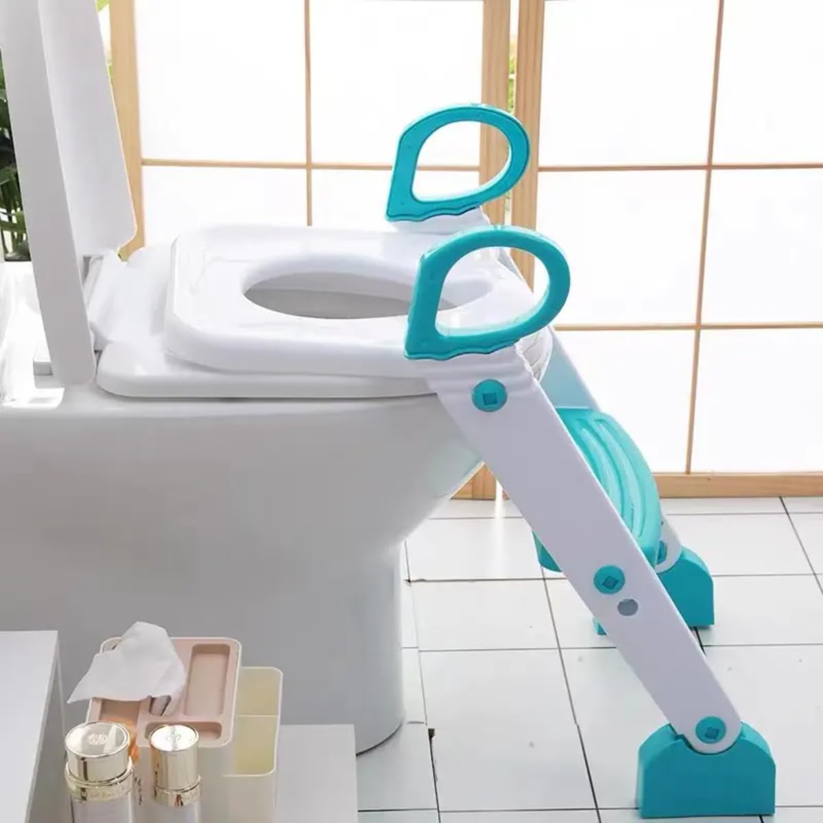 Convenient Step Stool Ladder: Integrated step stool ladder allows easy access to the toilet. Adjustable height and foldable design make it perfect for small bathrooms and easy storage when not in use.