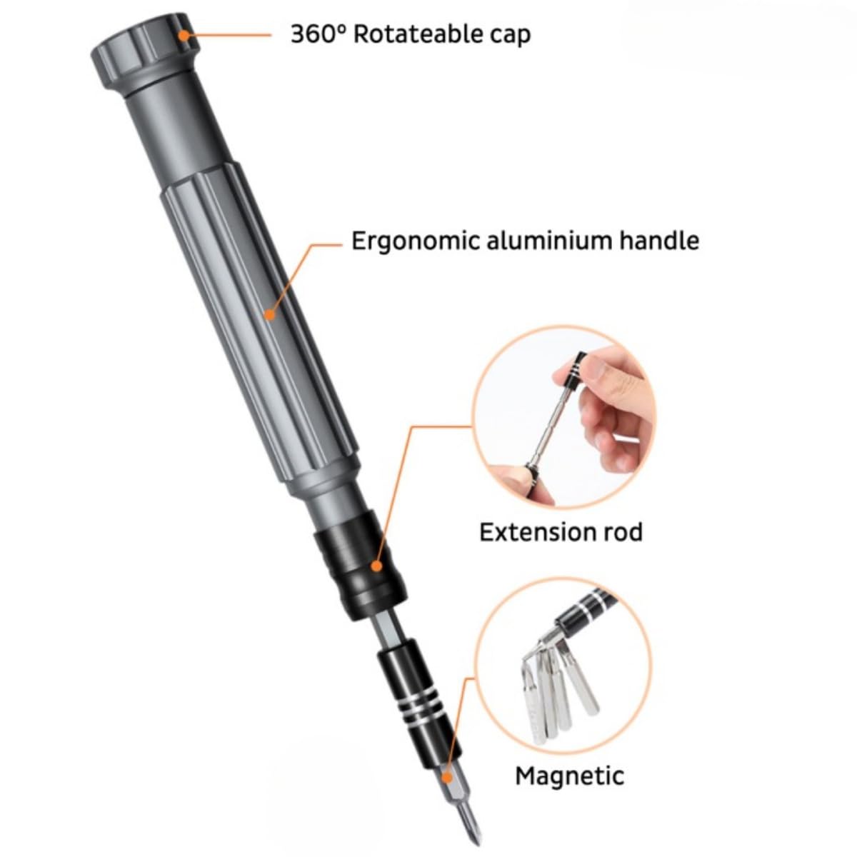 Magnetic Tips for Ease: The magnetic screwdriver tips securely hold screws in place, preventing drops and loss during repairs, making your work more efficient and hassle-free.