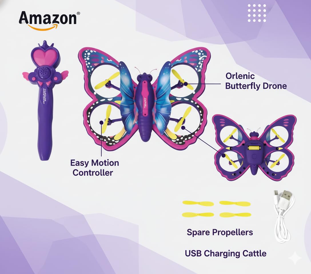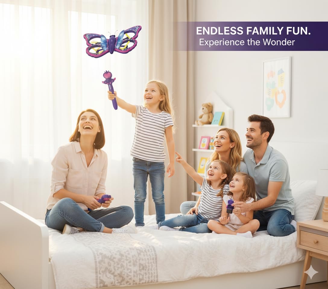 ⭐ Interactive Flying Butterfly with Remote Control – Experience fun and freedom with a remote-controlled butterfly drone featuring joystick and tilt motion controls, one-click take-off, and easy landing.