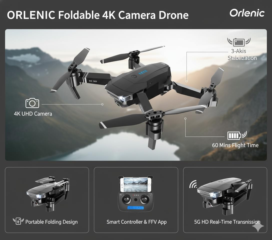 Capture high-definition aerial photos and videos with the 4K ultra-clear camera. The gesture control feature lets you take pictures or videos with simple hand movements, ideal for hands-free operation.