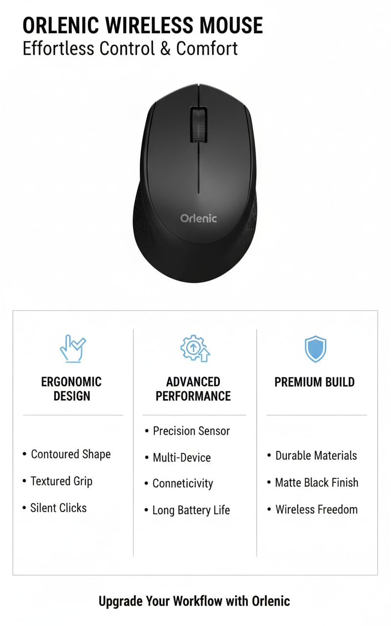 • Durable Build & Long Battery Life – Made from high-quality plastic with soft rubber side grips, this mouse delivers up to 24 months of battery life with a single AA battery and energy-saving auto-sleep mode.
