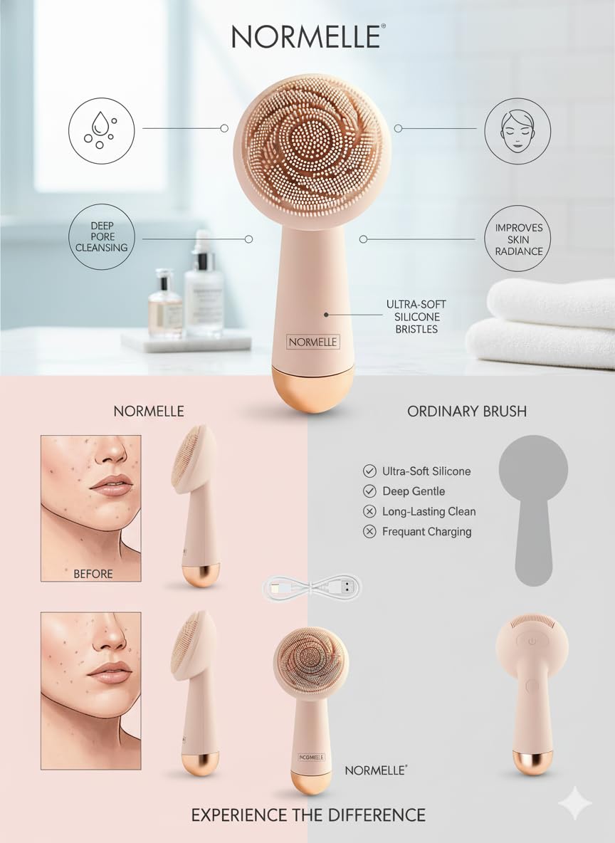 REVOLUTIONARY SILICONE CLEANSER – Electric facial scrubber with soft silicone head effectively removes dirt, oil, and makeup from the skin’s surface. Gentle yet thorough cleansing ensures radiant, refreshed, and smooth skin every day without irritation.
