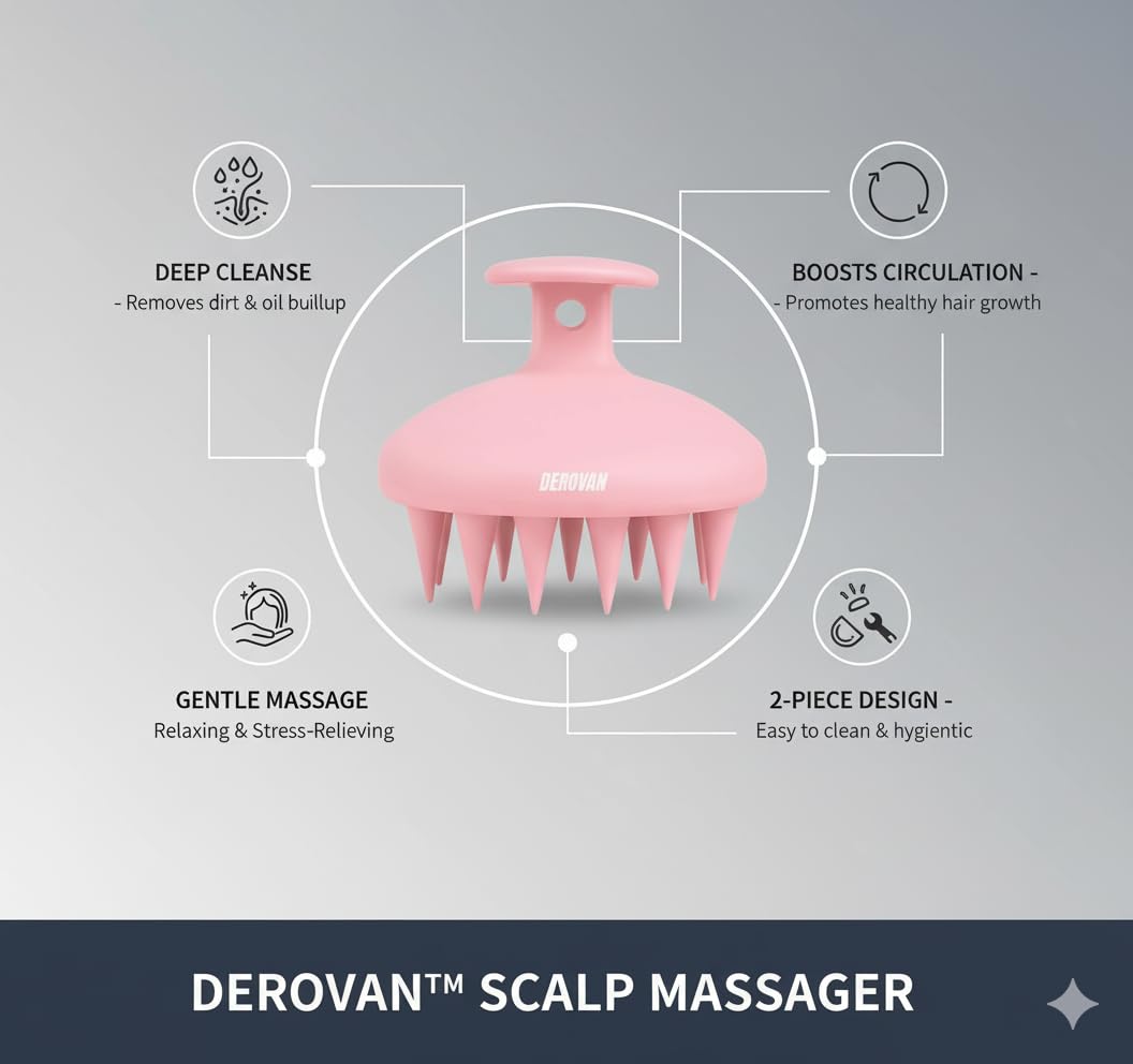 Soft, flexible silicone bristles softly exfoliate the scalp without scratching or tangling—safe for all hair types, including delicate or fine hair.