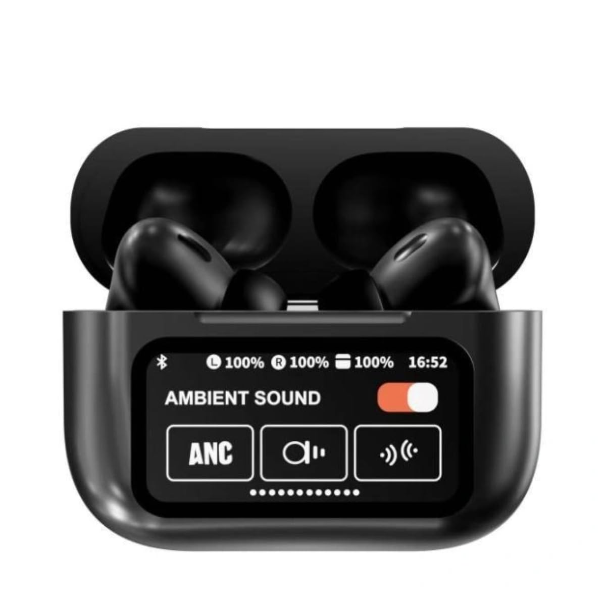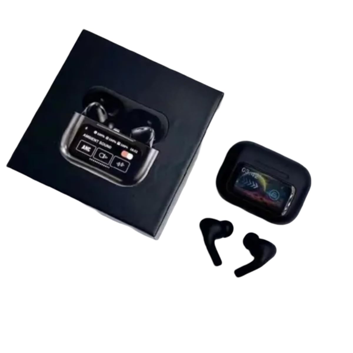 Bluetooth wireless in-ear earbuds with intuitive touch screen for easy controls, delivering deep bass and noise cancelling for music and calls. Ergonomic fit ensures comfort during extended wear