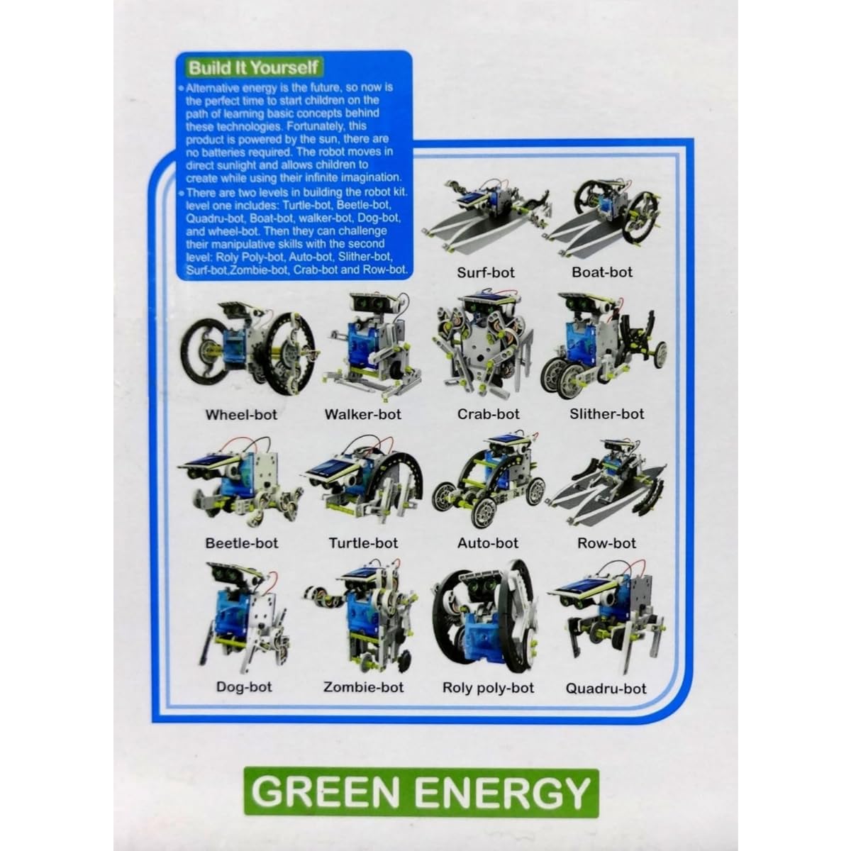 Includes parts to build 14 unique solar-powered robots, keeping kids engaged while developing focus, patience, and problem-solving skills.