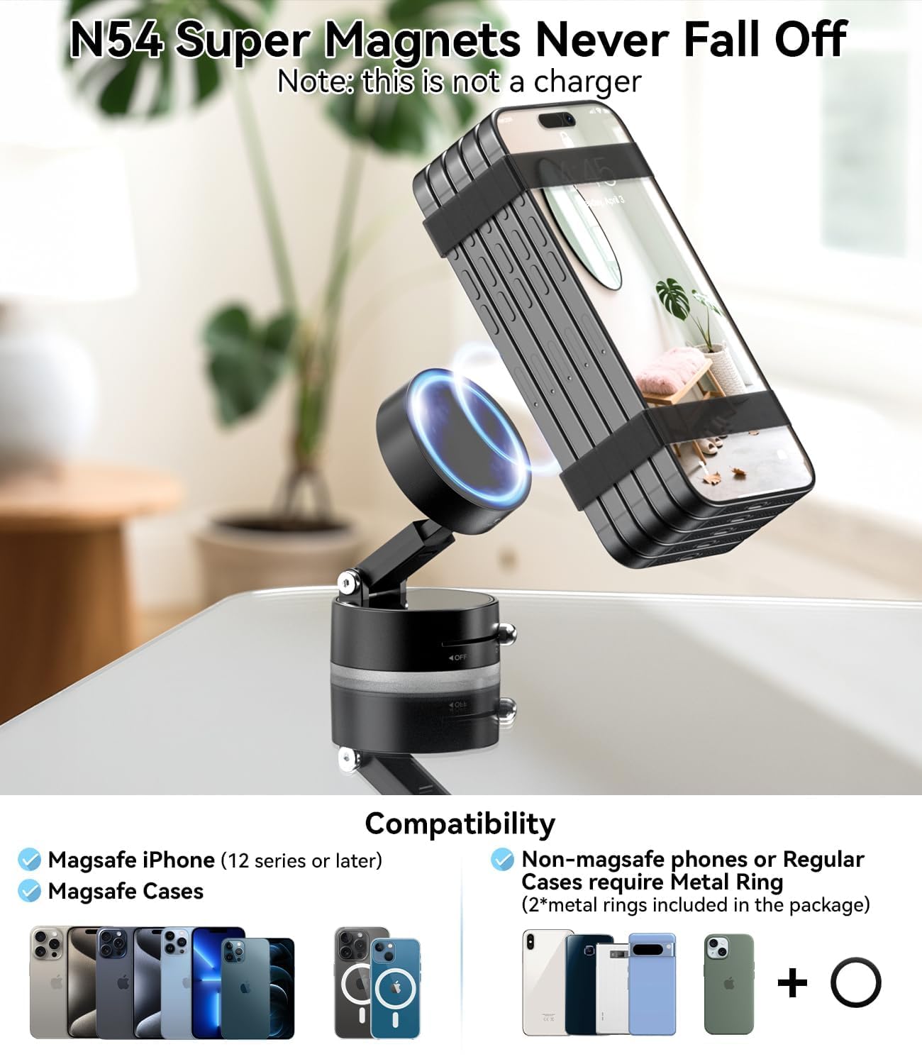 ✅ Durable & Premium Build 🏆 – Crafted from high-quality zinc alloy, this heavy-duty mount delivers long-lasting durability and a sleek, modern look for your car or home.