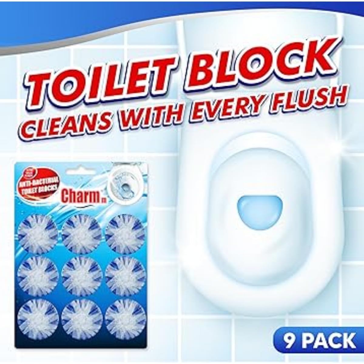 Toilet Block/Anti-Bacterial Toilet Cleaner, Cleans with Every Flush, Long-Lasting Freshness, Easy to Use, Eliminates Odors & Stains, 9-Pack