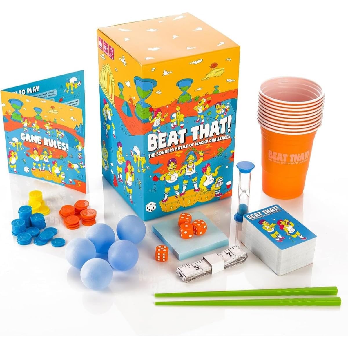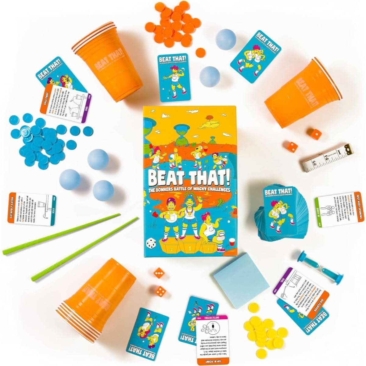 Unleash Hilarity with Beat That!: Engage in riotous challenges, stacking dice, balancing objects, perfect for family fun nights.monopoly board game