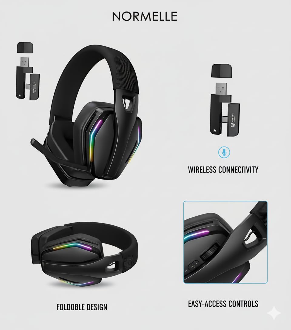 Tri-Mode Wireless Gaming Headset with RGB Lighting, Bluetooth 5.4 Over Ear Headphones with HD Rotating Mic, Memory Foam Earpads, 20H Playtime, 2.4GHz USB Wired