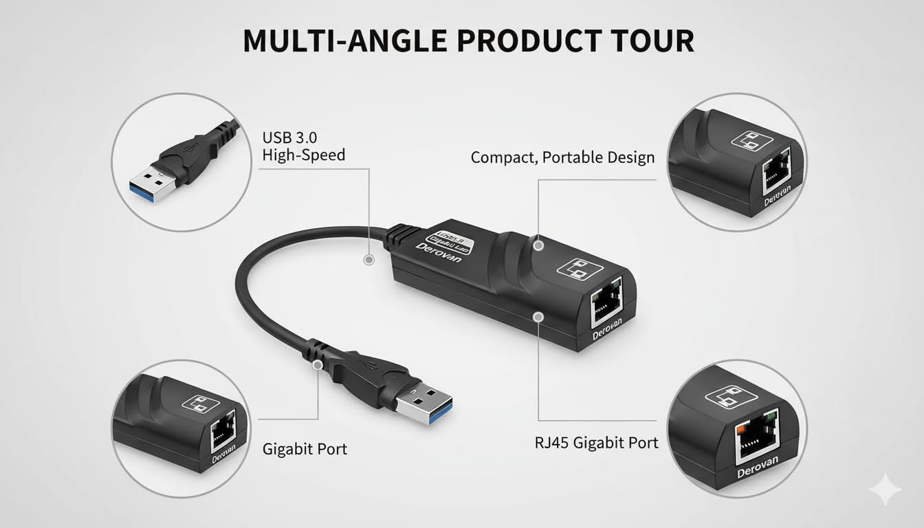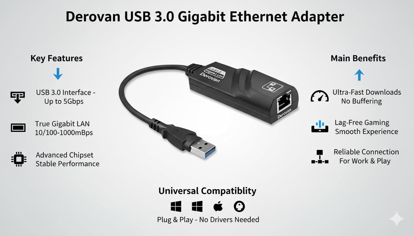 True Gigabit Speeds (10/100/1000 Mbps) – Delivers full bandwidth for streaming, large file transfers, gaming, and office use. Compatible with USB‑C 3.1 Gen 1 ports.