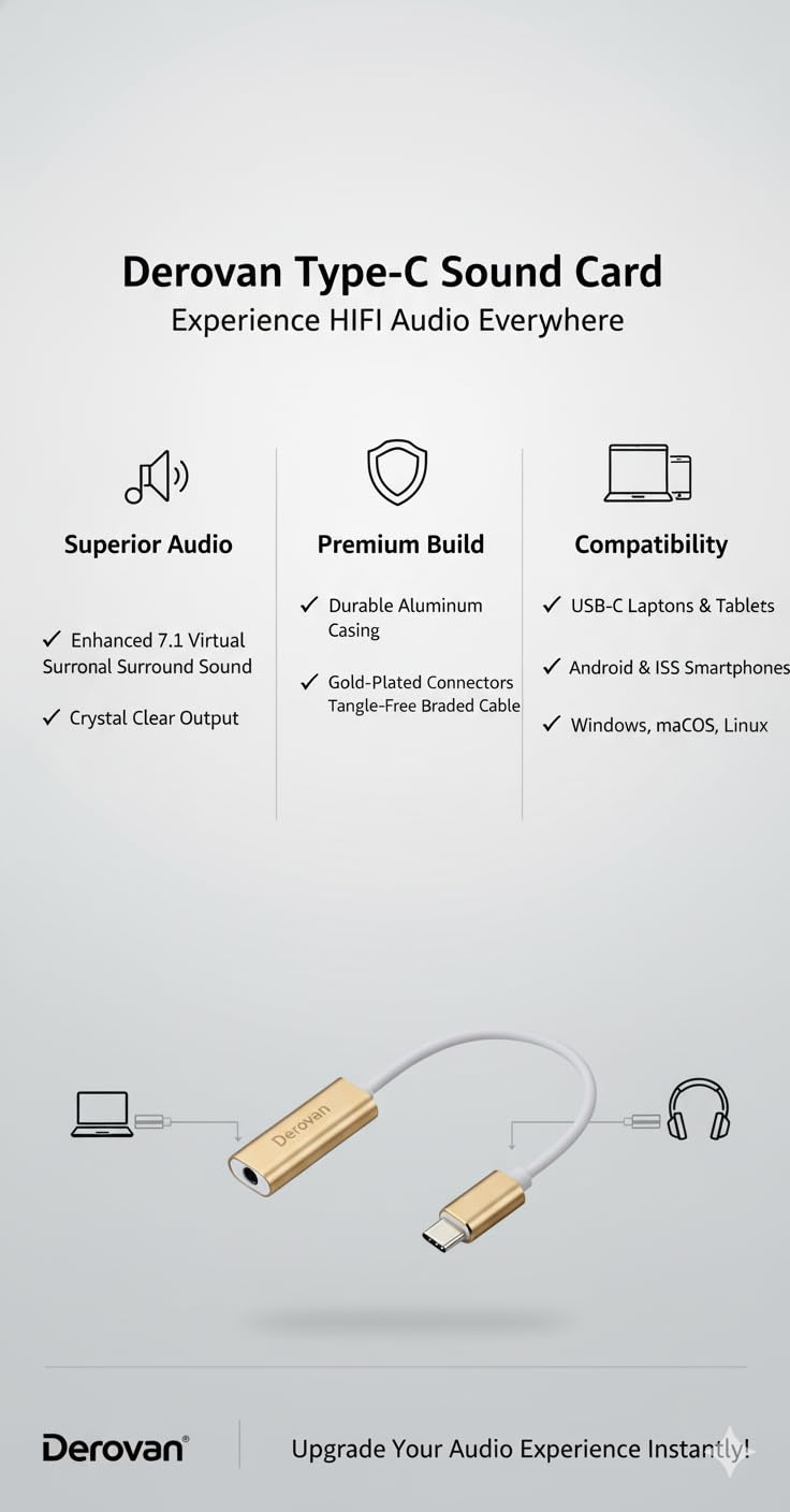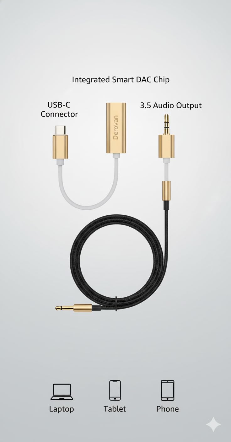 🪄 Compact & Travel‑Ready – Lightweight dongle format with USB‑C port; perfect as a quick audio solution for laptops, tablets, phones.