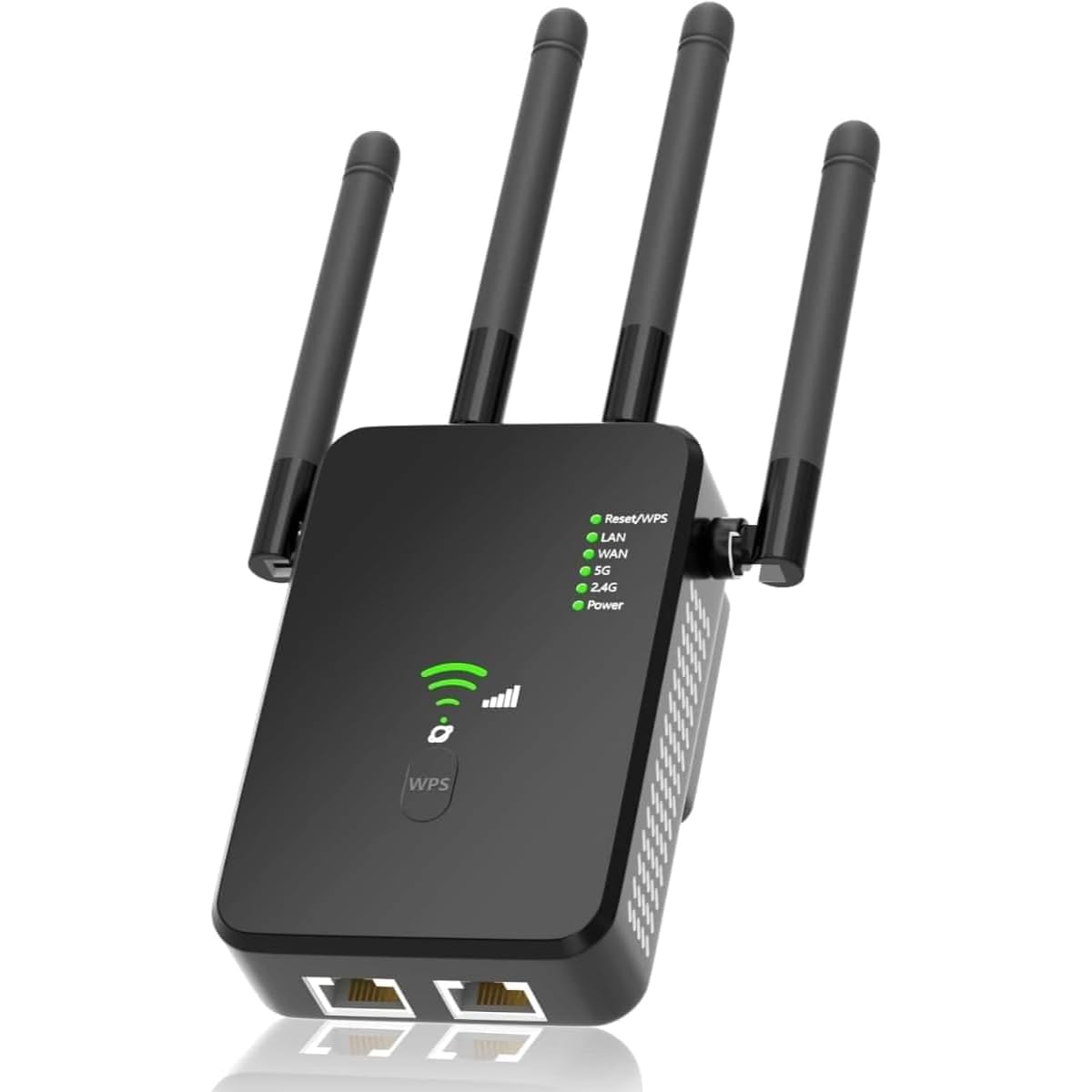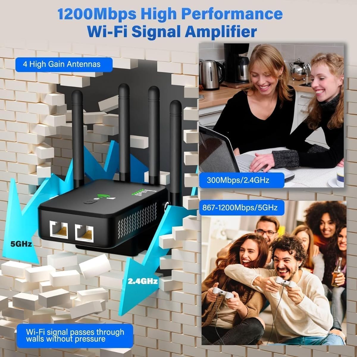 WiFi Range Extender Booster Dual Band 5GHz, 1200Mbps Wireless Repeater with Ethernet Port, Easy Set Up, Extends WiFi to Smart Home & Alexa Devices – EU Plug