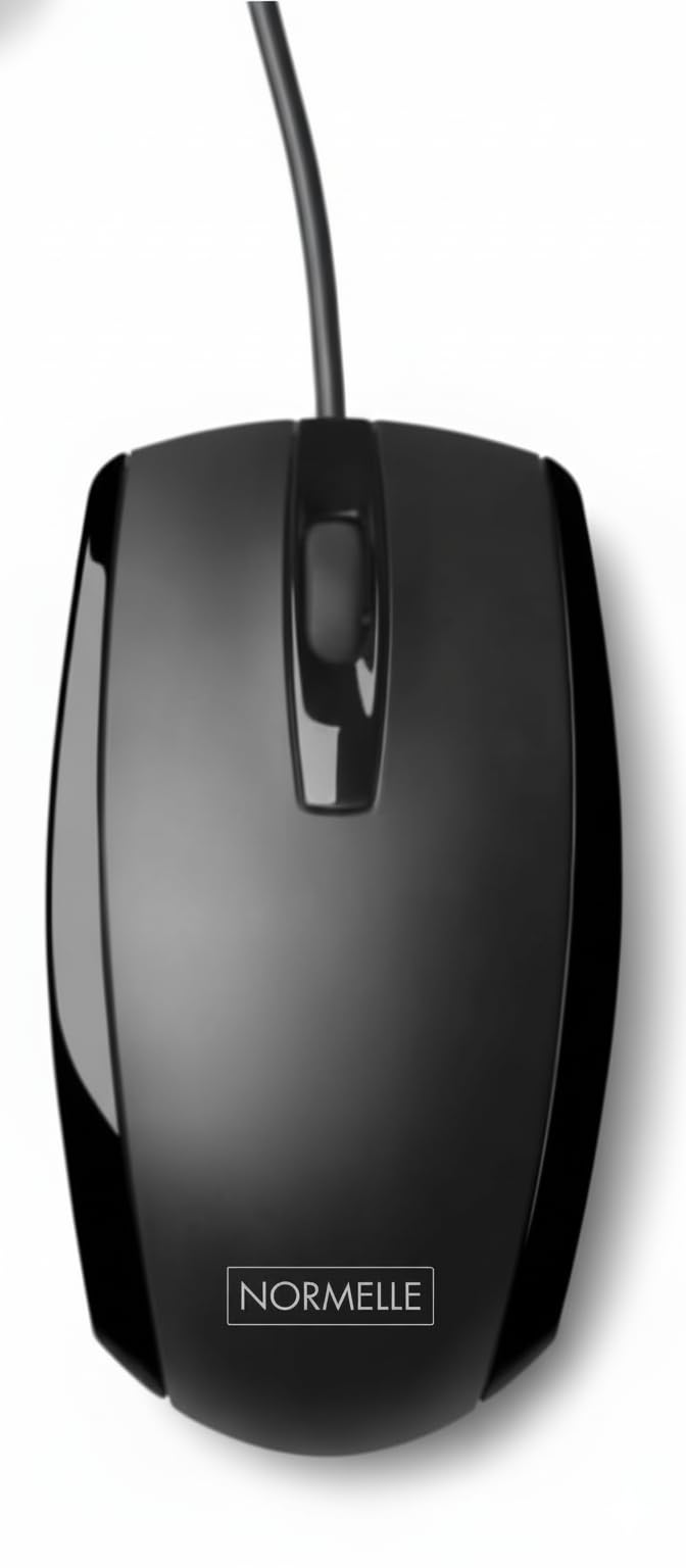 Wired USB Optical Mouse for Windows PC, Laptop, Mac, Notebook, Chromebook – 1600 DPI Ambidextrous Design with Scroll Wheel – Plug and Play, Ergonomic Right or Left Hand Use, Black
