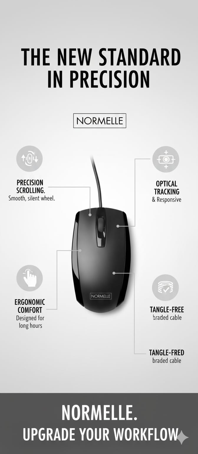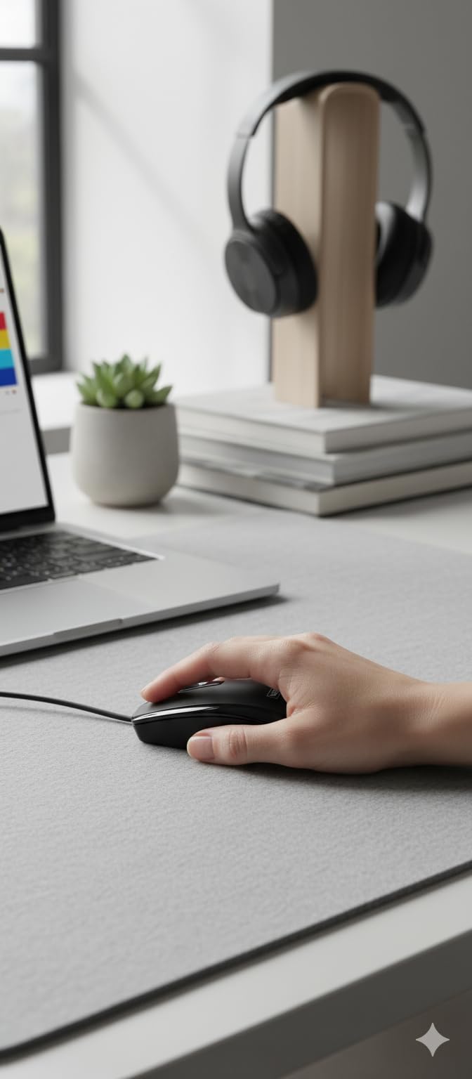• Ambidextrous Ergonomic Design for Comfort – Designed with a contoured arch and symmetrical shape, this wired USB mouse offers relaxed control for both right- and left-handed users, enhancing long-term comfort.