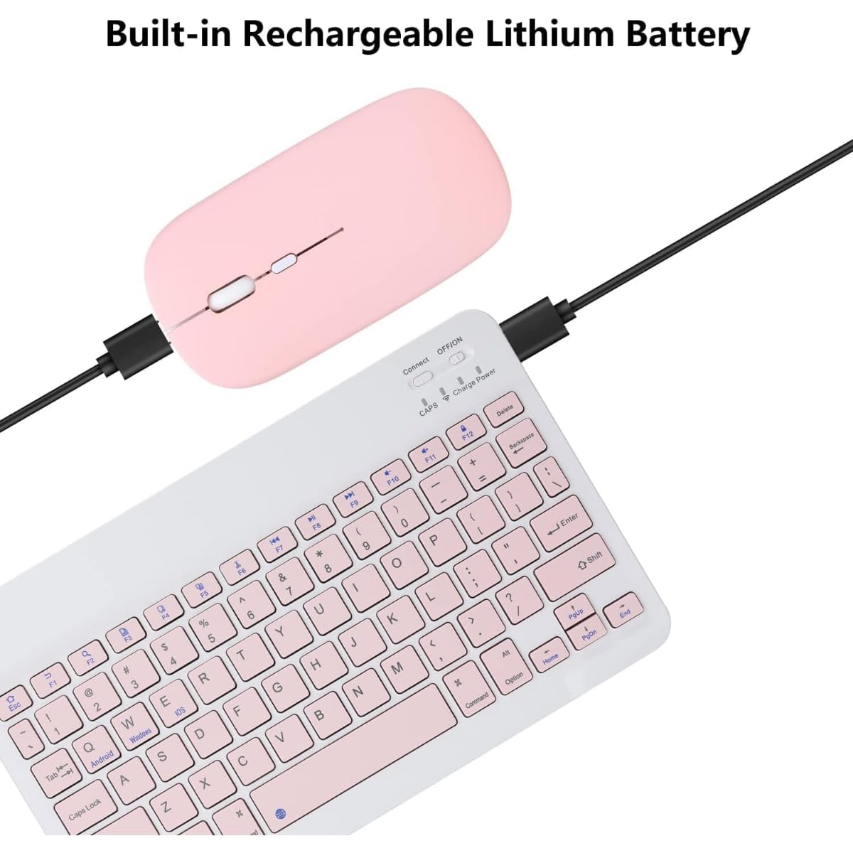Rechargeable Wireless Keyboard and Mouse Set: Enjoy long-lasting performance with built-in rechargeable batteries. Seamlessly connects via Bluetooth to tablets, phones, iPads, and more.