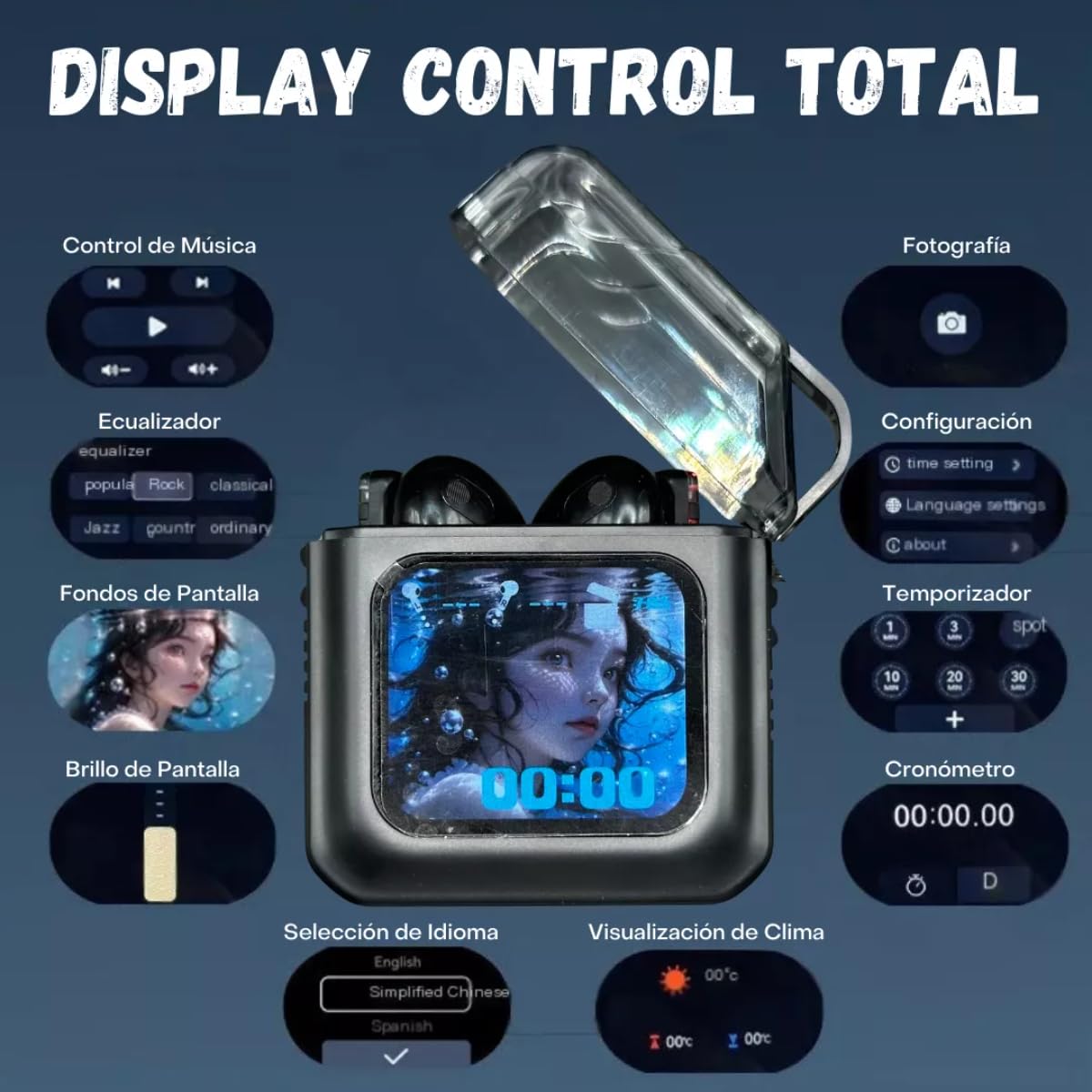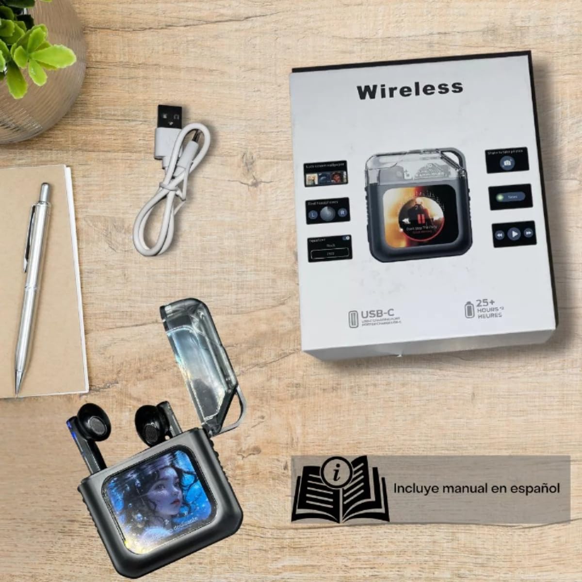 Portable Wireless Earbuds w/ Smart LCD Display – Bluetooth earbuds with noise-canceling technology; enjoy HD sound, long battery life, touch control, & charging case for calls, music & daily activities.”