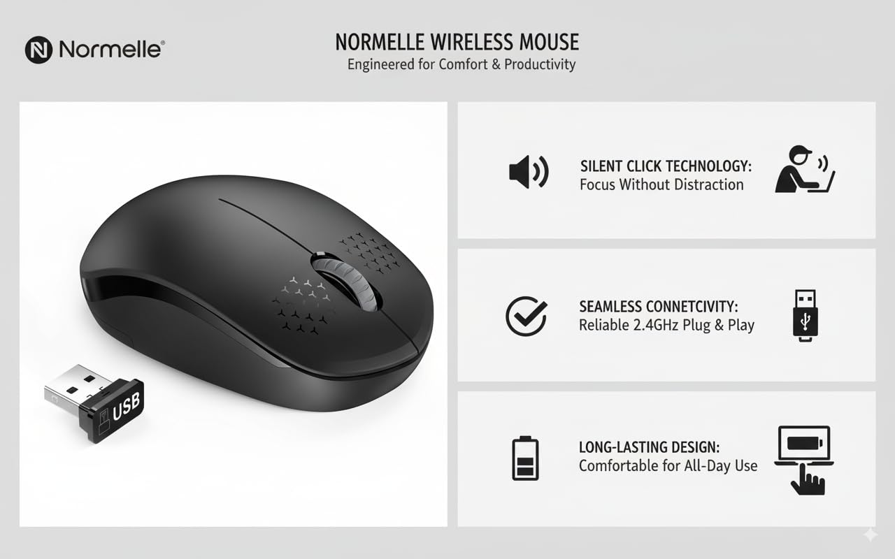 Portable and Wide Device Compatibility – Designed for professionals, students, and travelers, this cordless mouse works with laptops, PCs, tablets, and MacBooks. A versatile accessory for home, office, and on-the-go use.