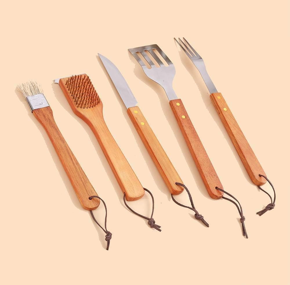 The ergonomically designed wooden handles provide a secure and comfortable grip, reducing hand fatigue during extended grilling sessions.